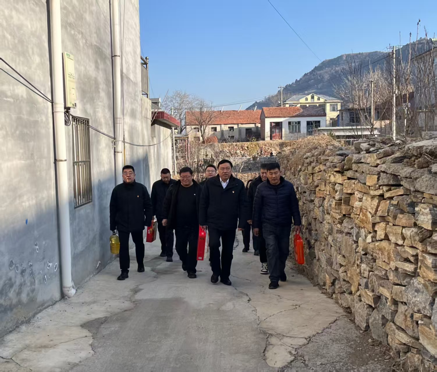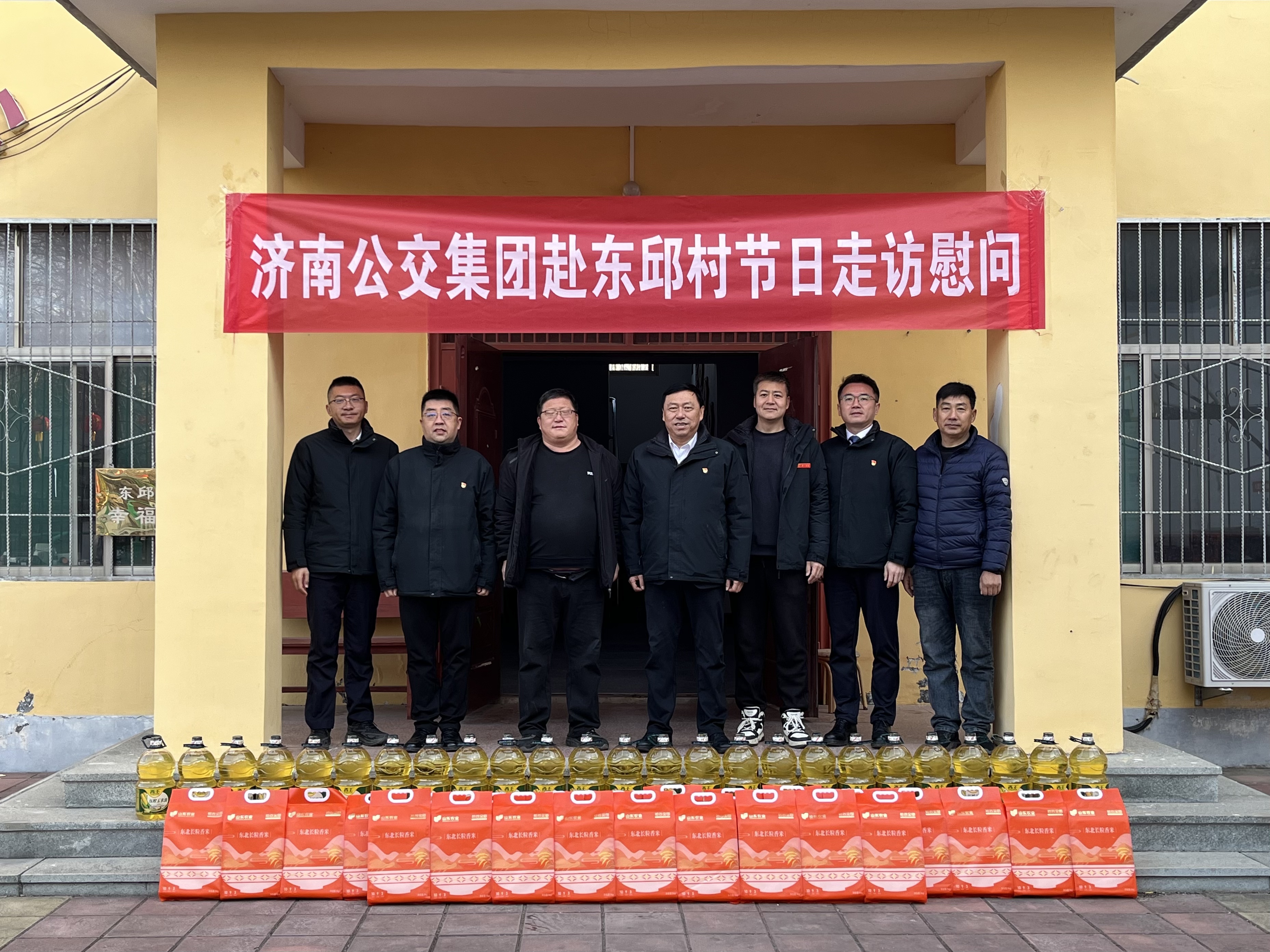 济南公交官网讯 2月11日上午,济南公交集团党委委员、副总经理、工会主席谢刚,党群工作部副部长韩龙,仲宫街道高而党委南高管区书记鞠远奎,东部分公司经理韩猛,副经理杨阳一行来到“第一书记”徐祜东所在的高而街道办事处东邱村,开展春节前走访慰问活动。