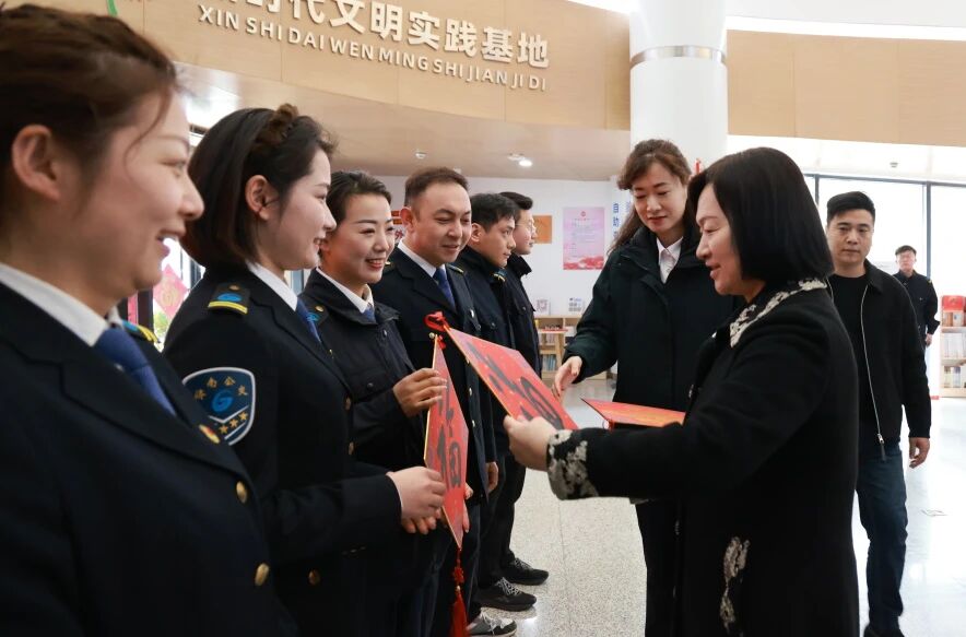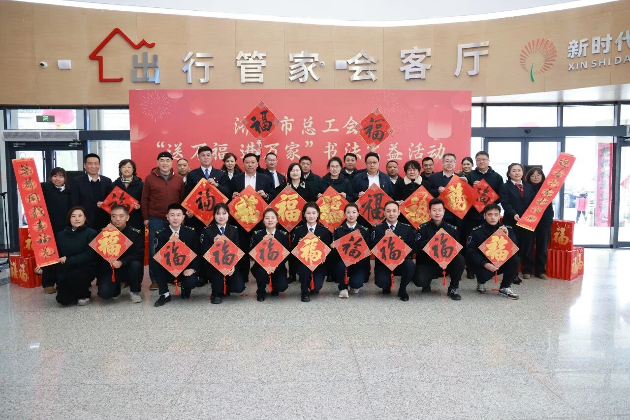 济南公交官网讯 在马年新春佳节即将到来之际,为丰富职工群众精神文化生活,营造欢乐、祥和、喜庆的节日氛围,2月10日,济南市总工会到济南公交汉峪公交场站开展“送万福 进万家”书法公益活动。市总工会党组副书记、副主席申世平,宣教文体部部长、一级调研员周延,济南公交集团党委副书记、董事董俊生,党委委员、副总经理、工会主席谢刚参加了活动。活动由周延部长主持。