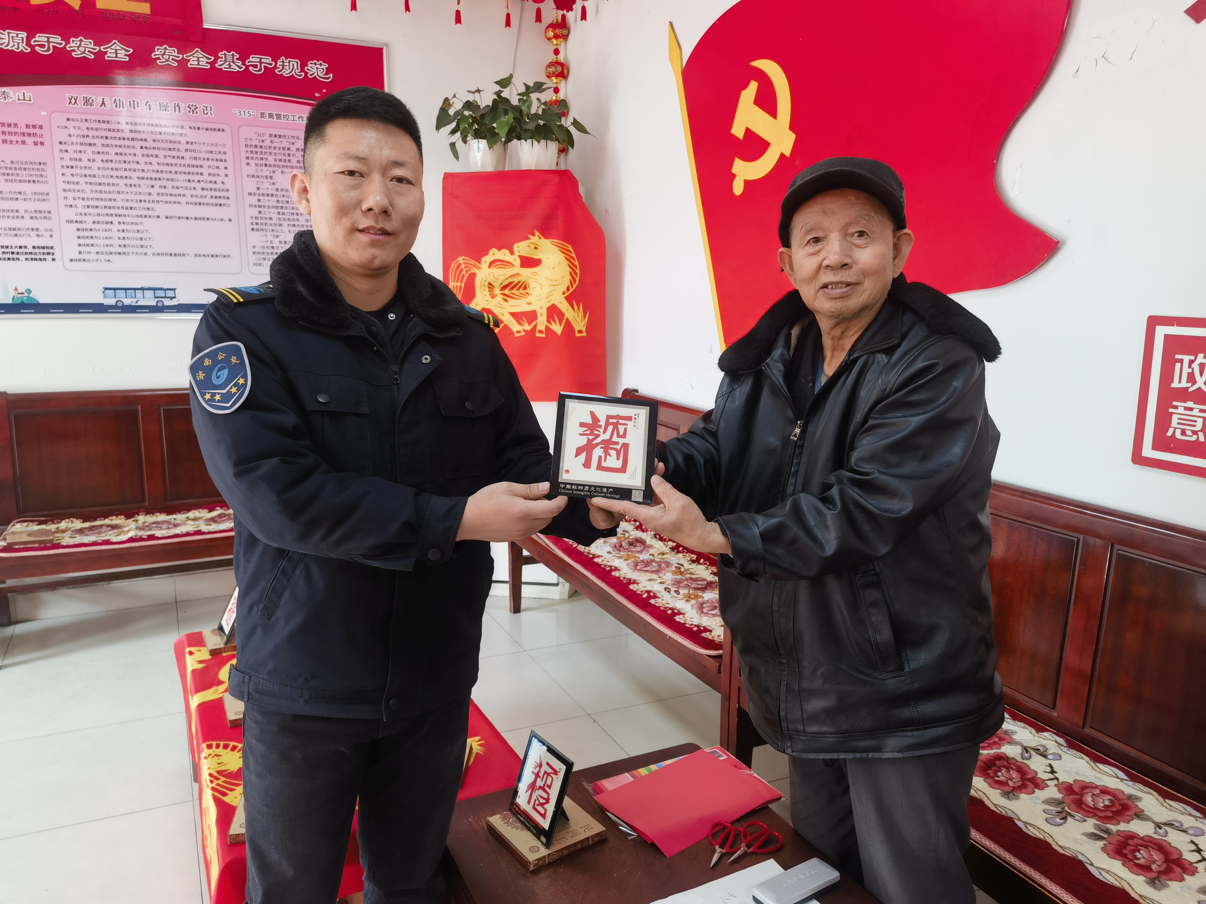 济南公交官网讯 2月13日上午济南公交干线分公司七队站房内暖意融融,一场别开生面的“剪纸送福”活动在此温馨展开。车队特别邀请济南剪纸艺术名家徐建大爷走进公交一线,用精湛的剪纸技艺为公交驾驶员和广大市民乘客送上独具匠心的新春祝福。