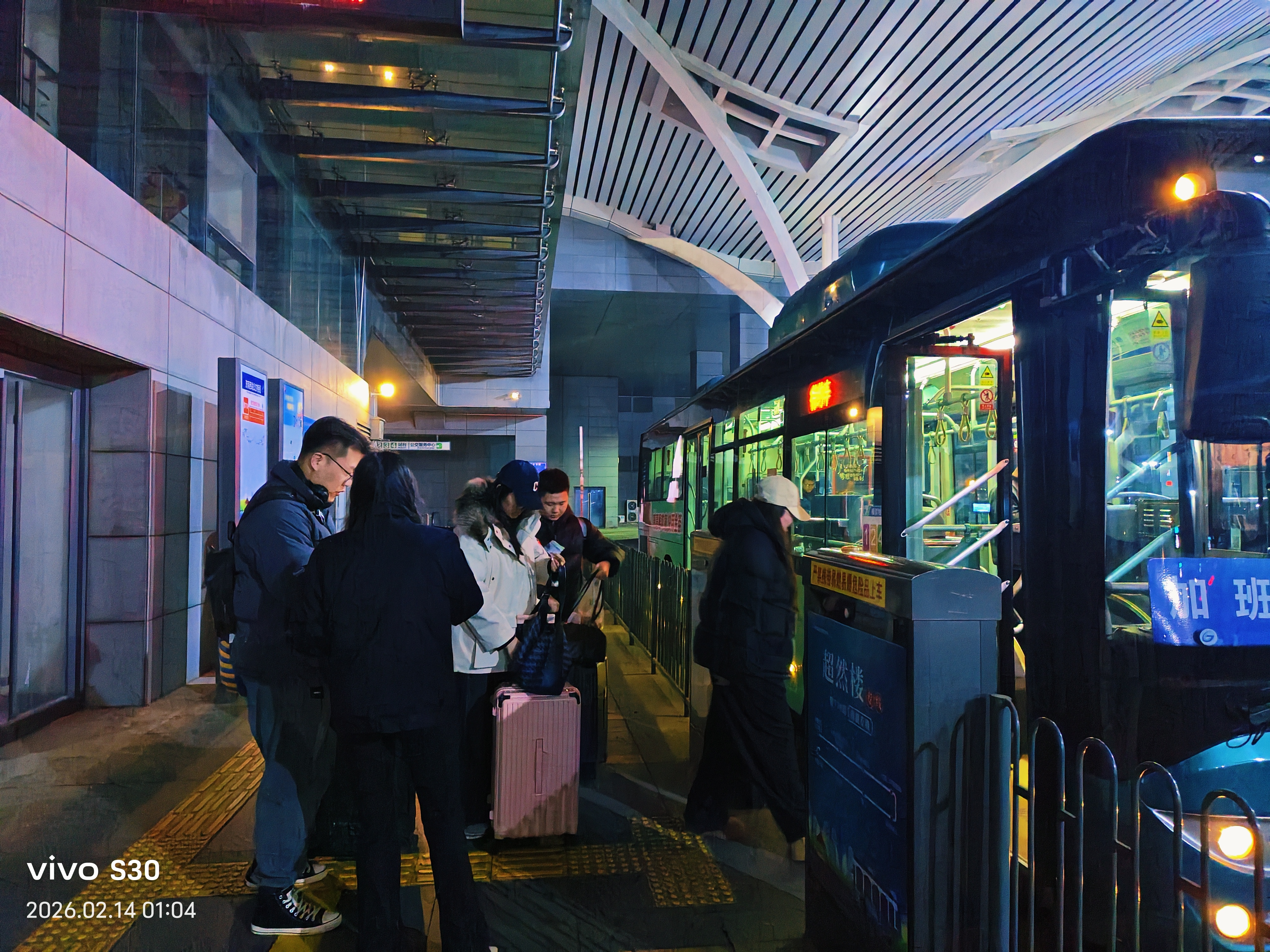 济南公交官网讯 春运正酣,暖意不减。2月14日凌晨,夜色未褪,济南西站依旧灯火通明,包括G4345、G4325在内的多列临时旅客列车陆续抵达,满载着返乡旅客的思乡之情。济南公交西部分公司在济南西站公交枢纽严格践行公交集团“高铁不到站,公交不收车”的服务承诺,工作人员坚守岗位、精准调度,用贴心服务为深夜归乡旅客筑牢出行保障线,让春运归途更有温度。