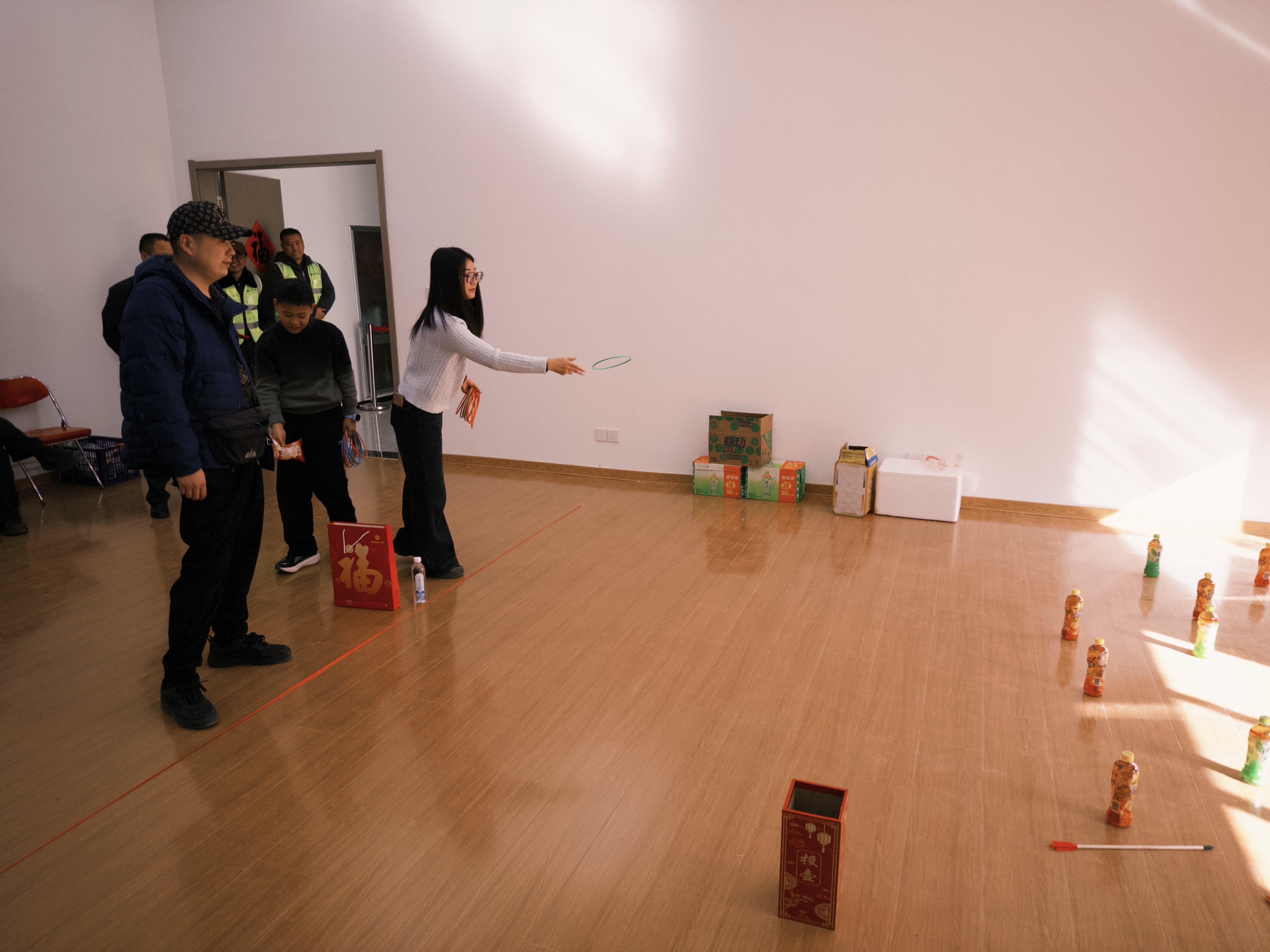 活动现场年味十足,四大体验区热闹开场。写福字区笔墨飘香,大家挥毫泼墨,将美好祝愿融进一张张福字;剪窗花区指尖生花,红纸折叠裁剪,精致窗花尽显传统韵味;猜灯谜区趣味盎然,大家凝神思考、相互交流,在传统文化中感受乐趣;游戏区更是欢声笑语不断,套圈、可乐滚滚乐、传统投壶轮番上阵,职工与家属默契配合,小奖品频频送出,现场气氛热烈温馨。