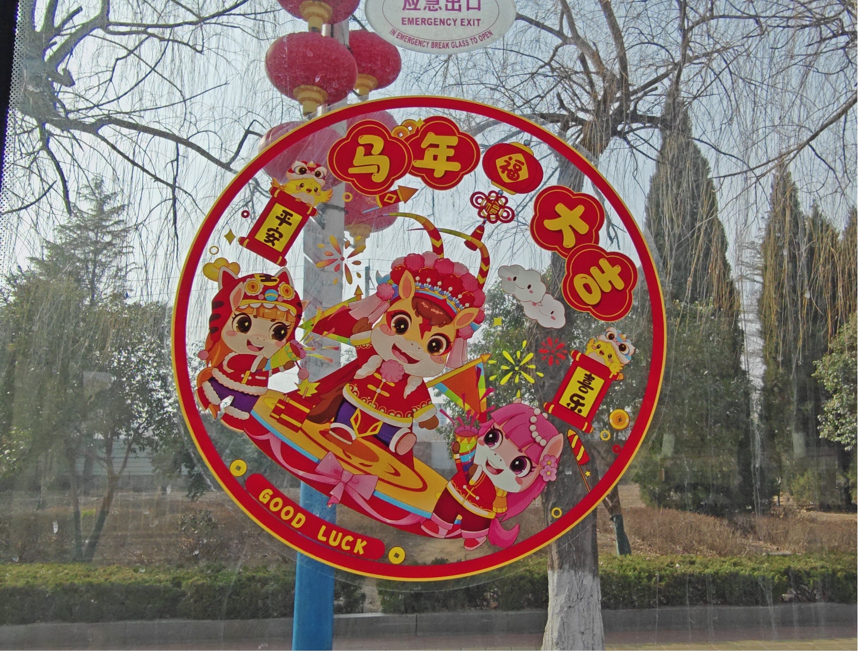 踏上这趟“新春专列”,新春的祝福便从车门开始蔓延。车窗上是寓意吉祥的剪纸,拉杆挂上喜庆的红色“新衣”,车门是满含新春祝福的对联,这不仅仅是一辆公交车,更是一座满载着祝福与欢声笑语的“移动新春乐园”。