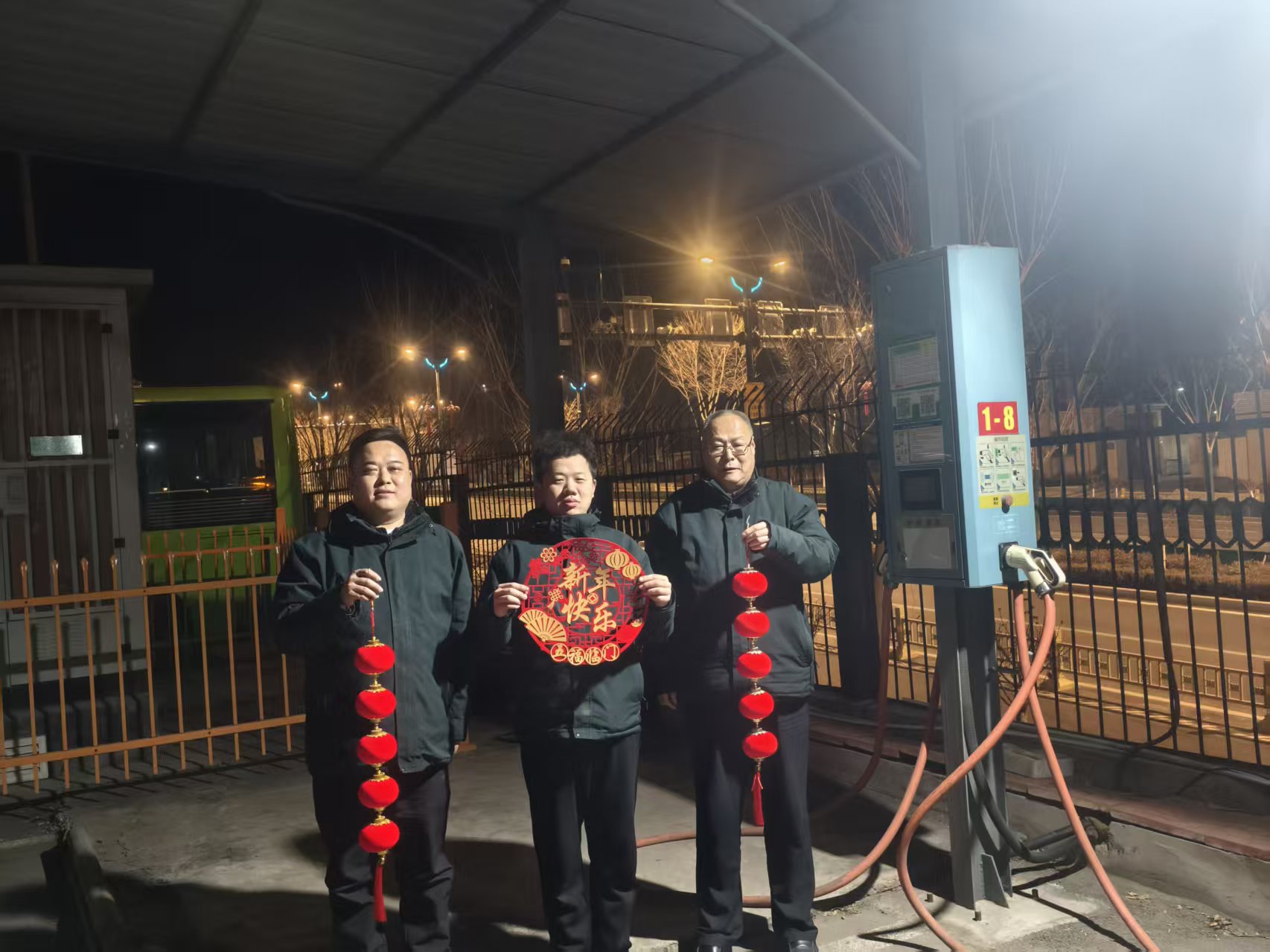 济南公交官网讯 2026年除夕,寒冷的夜晚中,场站并未张灯结彩,只有充电桩规律运行时发出的嗡嗡声,以及公交车整齐排列的身影。充电工张务汉拿着手电筒,光束划过一排排轮胎——这是他今晚第三次场站巡查。除夕夜九点,当大多数家庭已围坐观看春晚时,莱芜公交能源部9个场站的19名充电工,正穿梭于零下的凛冽寒气之中,为城市“充电”。