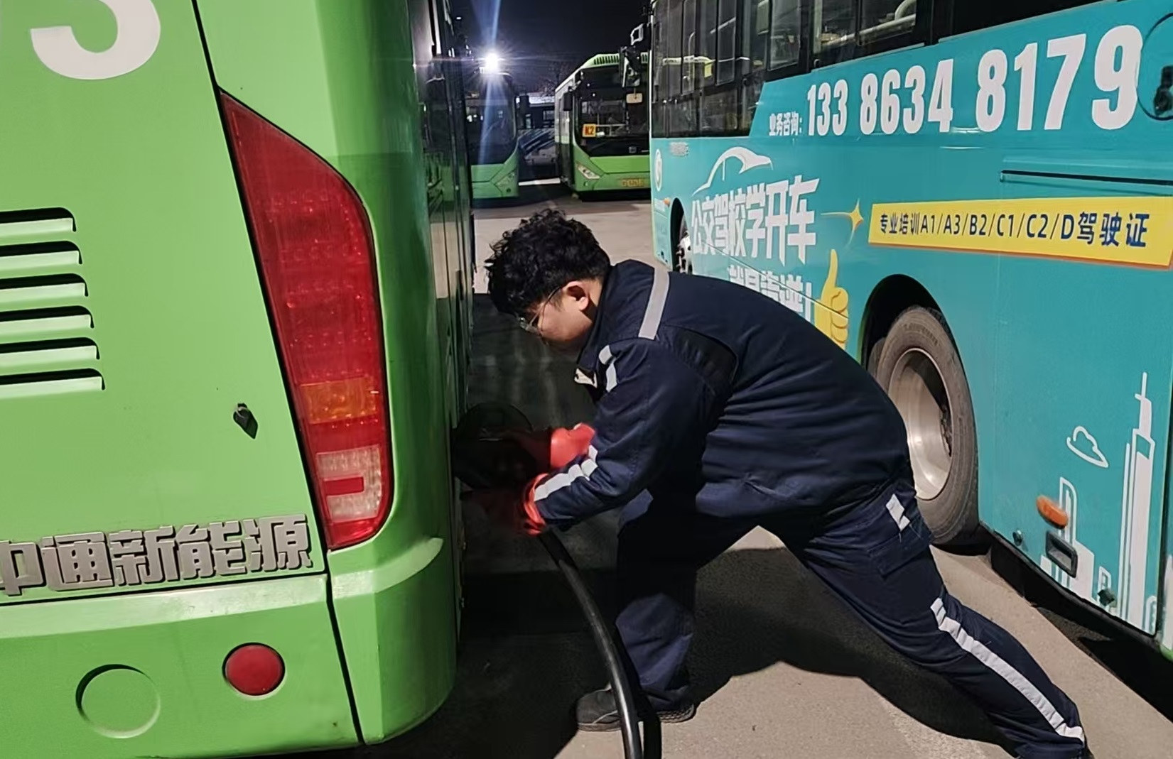 鲁中车队的监控录像记录下这样一幕:五点三十分整,首班K1路公交车驶出场站时,在门口特意停顿了两秒,车灯闪烁三次,这是驾驶员陈俊进和充电工冯佃文之间特殊的“新年问候”。当新年的第一缕阳光洒向充电桩,充电工们才结束连续忙碌的工作。他们的脸上带着疲惫,工作服上沾着夜露与灰尘,但眼神是满足的——因为他们知道,这个清晨,每一辆公交车都是“马力十足”。