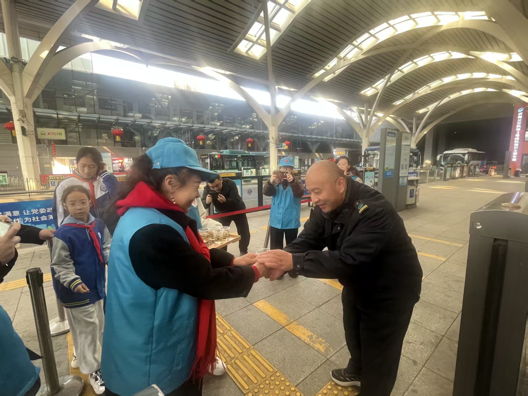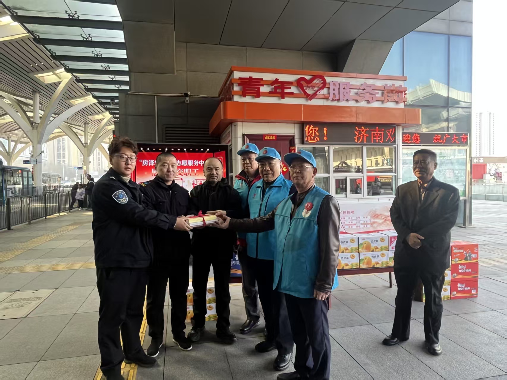 济南公交官网讯 农历大年初四(2月20日),当千家万户仍沉浸在新春团圆的喜悦之中,济南公交西部分公司济南西站公交枢纽的职工们依旧坚守运营一线,全力保障市民节日出行顺畅。当日,“房泽安热线”志愿服务中心的志愿者们带着关怀与敬意来到枢纽,为坚守岗位的一线公交职工送上暖心支持。