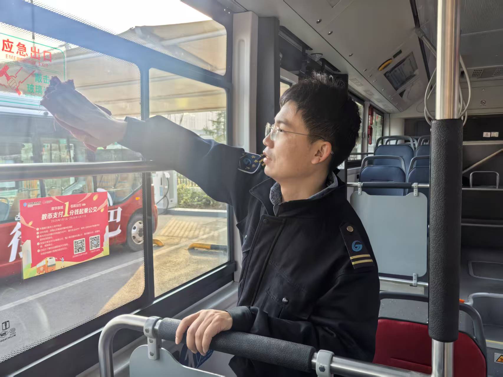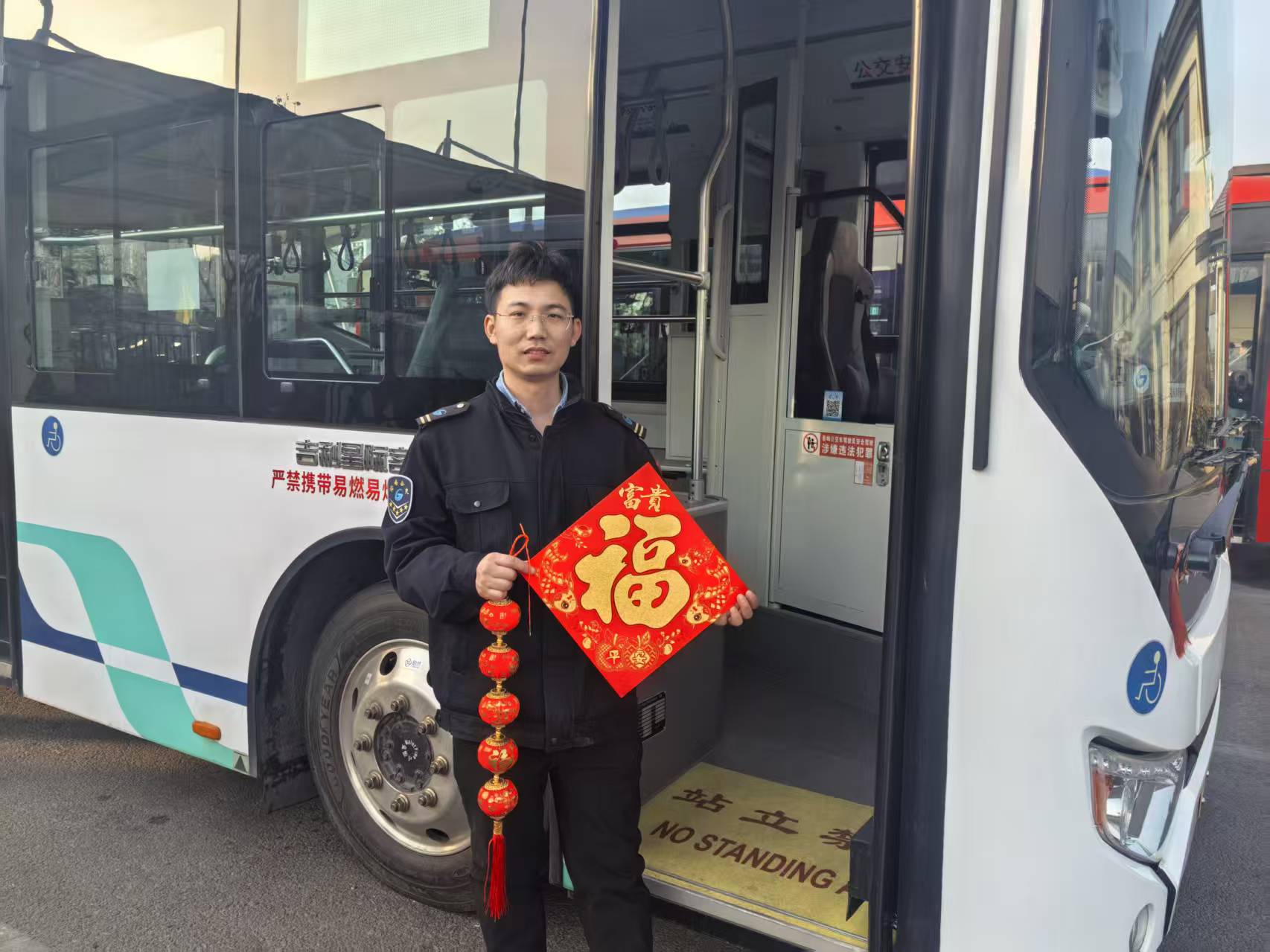 作为全年实现365天零投诉、乘客满意度100%的先锋模范,林鹏始终把乘客需求放在首位,春节期间更是丝毫不敢松懈。天还未亮,他便早早来到公交场站,对车辆进行全方位安全检查,对制动系统、轮胎气压、灯光线路逐一排查,绝不放过任何一处安全隐患;随后拿起清洁工具,细致打扫车厢卫生,座椅、扶手擦拭得锃亮如新,卫生死角清理得干干净净,让每一位乘客都能坐上整洁舒适的“新春车厢”。