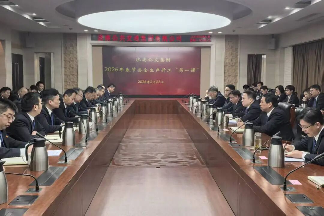 济南公交官网讯 为进一步压实安全生产责任、筑牢安全发展防线,确保全年各项工作开好局、起好步,2月23日,济南公交组织召开2026年春节后安全生产开工“第一课”专题会议,旨在深入学习贯彻习近平总书记关于安全生产的重要论述和重要指示批示精神,全面落实省、市关于安全生产开工“第一课”工作部署,全力保障市民平安出行和集团安全稳定发展。集团党委书记、董事长颜廷虎讲授安全生产开工“第一课”,集团班子成员、各单位党政负责人、各部室负责人在主会场参加会议,其他所属各单位在分会场收听收看会议。