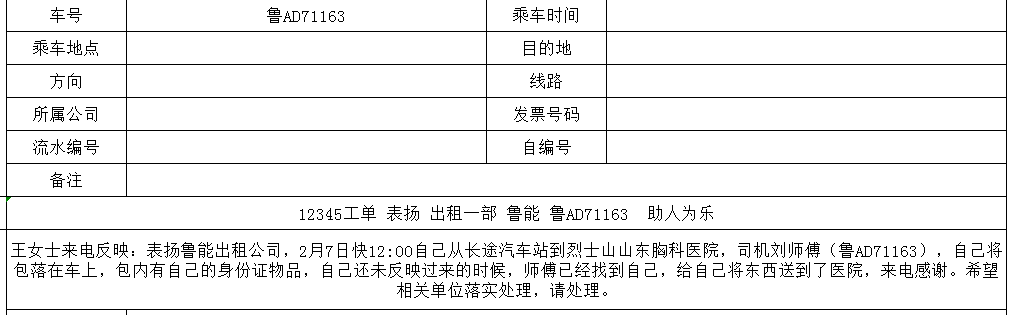 济南公交官网讯 2月6日11时53分许,市民王女士从长途汽车站搭乘恒通公司鲁AD71163号巡游出租车,前往山东胸科医院探望住院的老人。因牵挂老人病情,王女士下车时匆忙离开,不慎将手提包遗落在出租车后座,包内装有重要证件、现金及就医相关资料,一旦丢失将给她带来极大困扰。