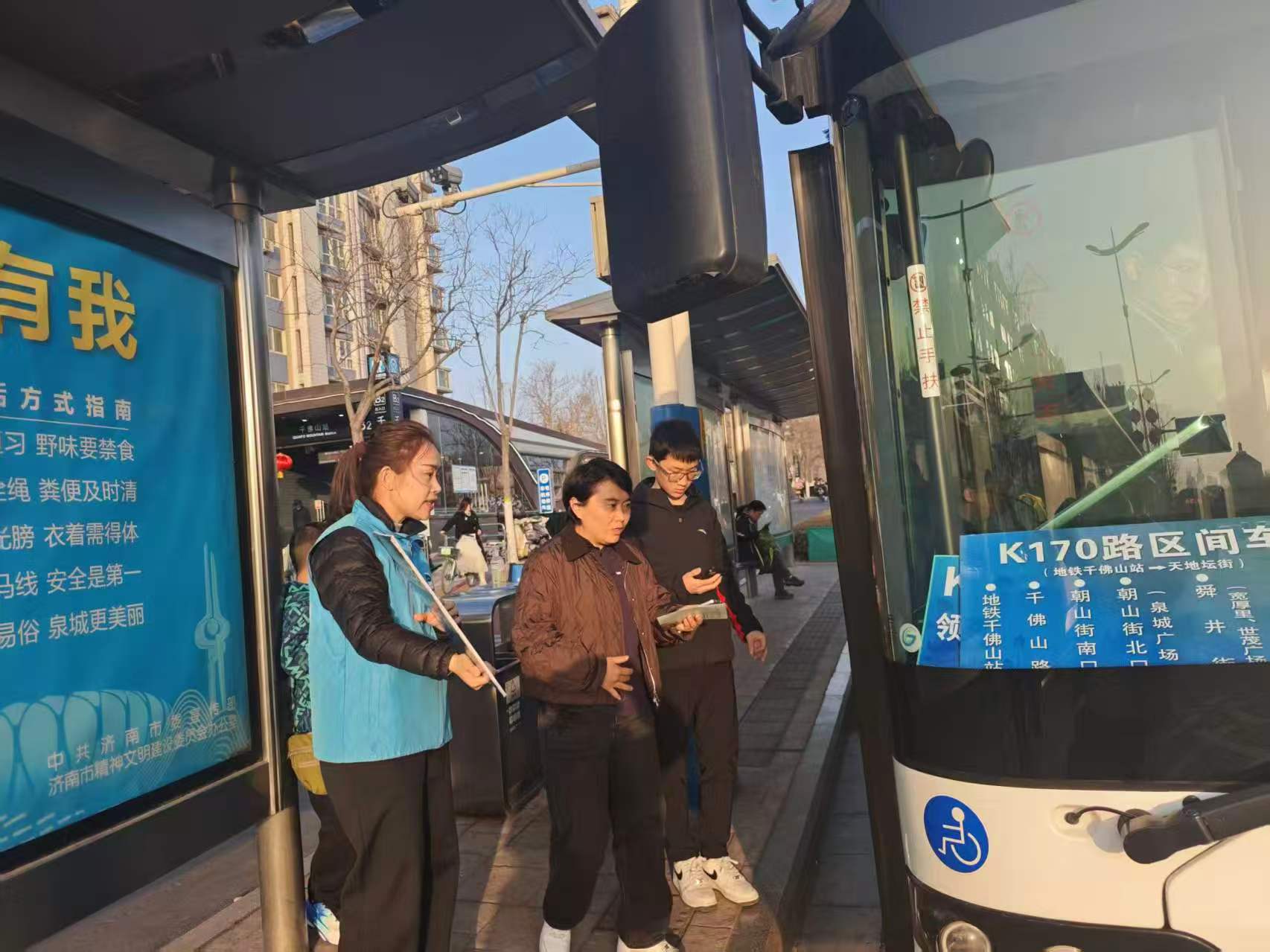 为方便市民乘客出行,乘坐地铁在千佛山地铁站出站后,市民即可直达公交站点,实现地铁与公交零换乘、无缝衔接,乘坐K170路公交车可直接前往大明湖景区方向,大幅提升出行效率。面对节日期间客流大幅增加的实际情况,南部分公司五队快速研判、精准施策,专门开通千佛山地铁站至天地坛街区间车,精准对接市民前往老城区、大明湖片区的核心出行需求。