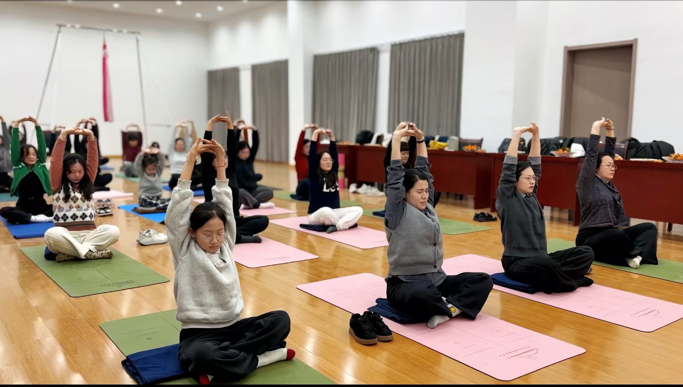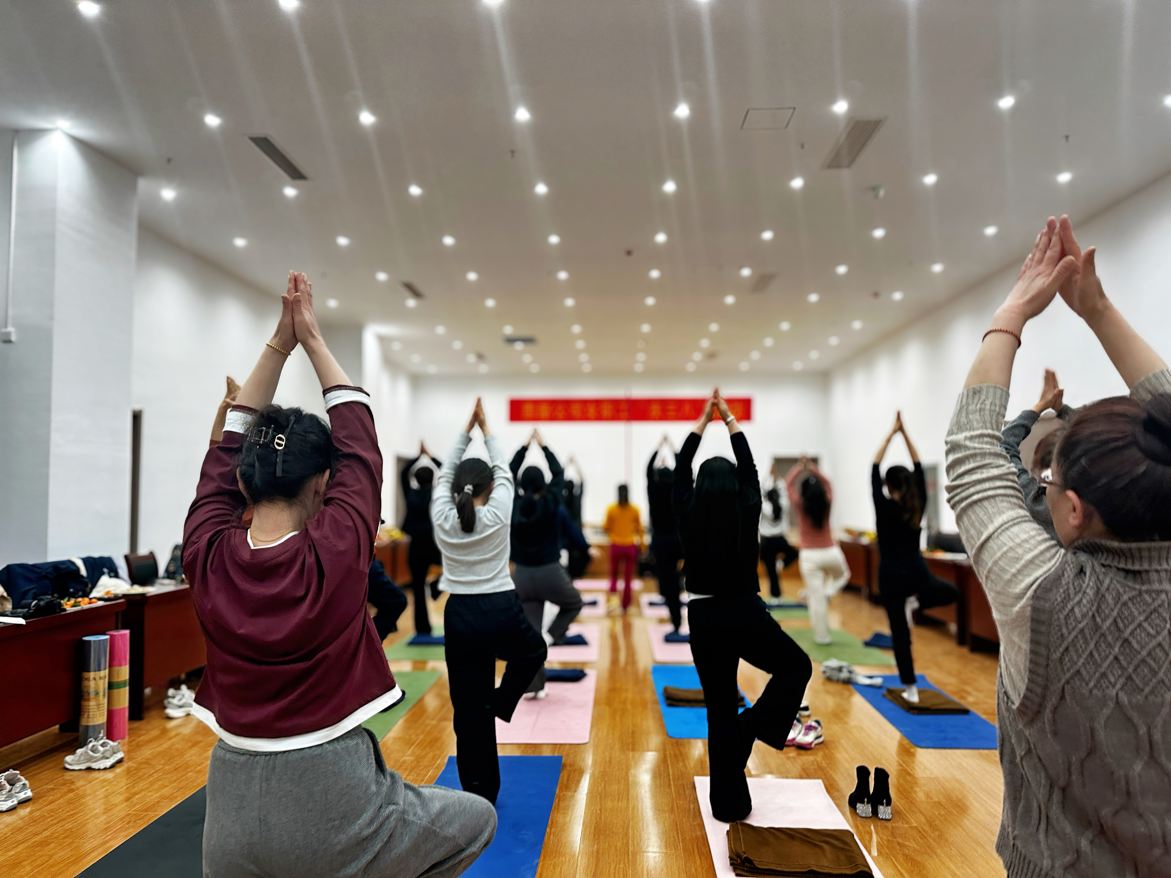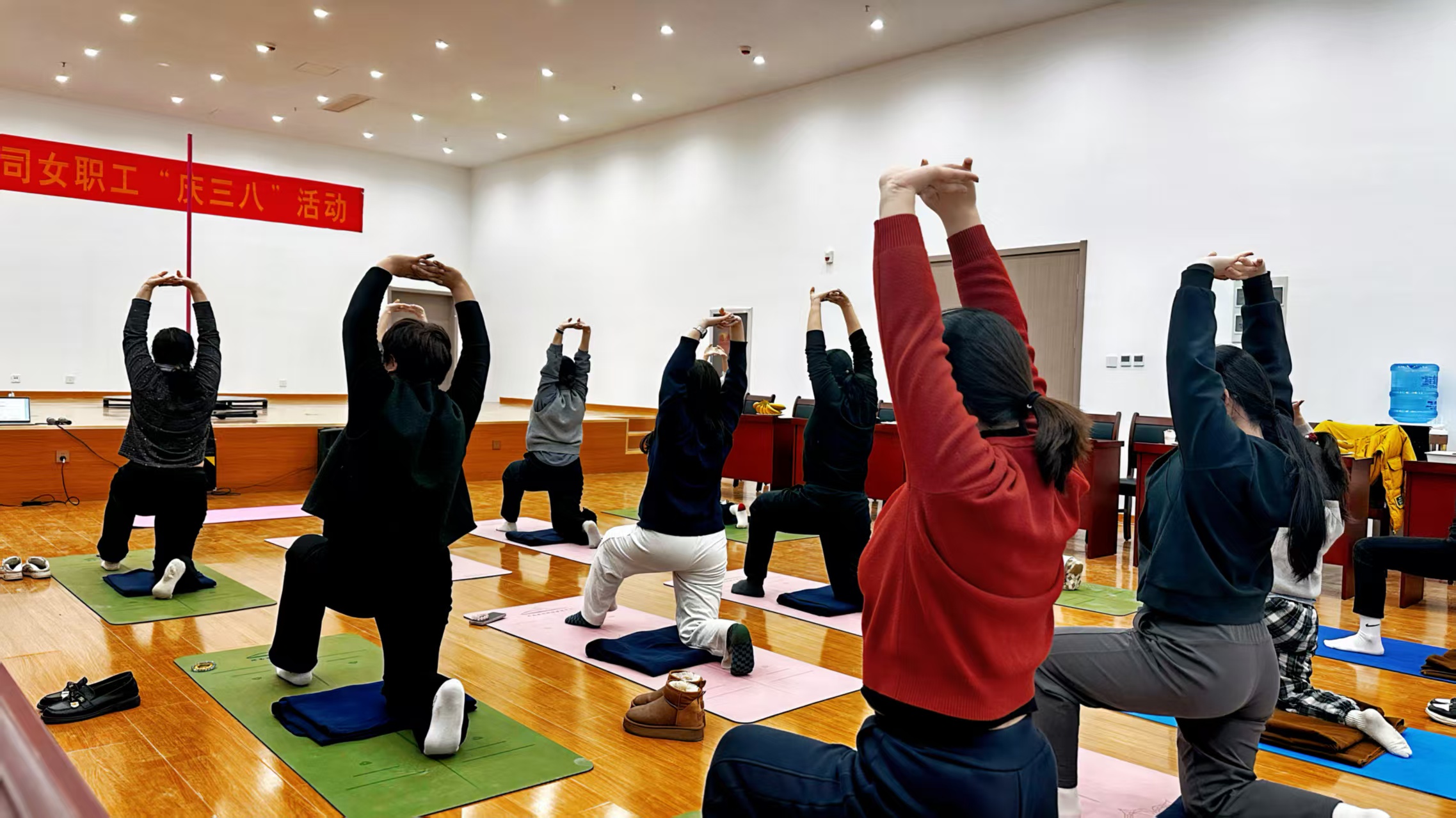 活动现场布置温馨雅致,规划有序的瑜伽体验区、果香四溢的茶话区相得益彰。下午13时30分,女职工们有序签到入场,领取专属瑜伽垫。14时活动正式开始,专业瑜伽老师带来零基础舒缓瑜伽教学,带领大家进行肩颈放松、呼吸冥想等练习。在轻柔舒缓的音乐中,大家舒展身姿、调整呼吸,在一呼一吸间卸下工作疲惫,沉浸式感受身心放松的愉悦。