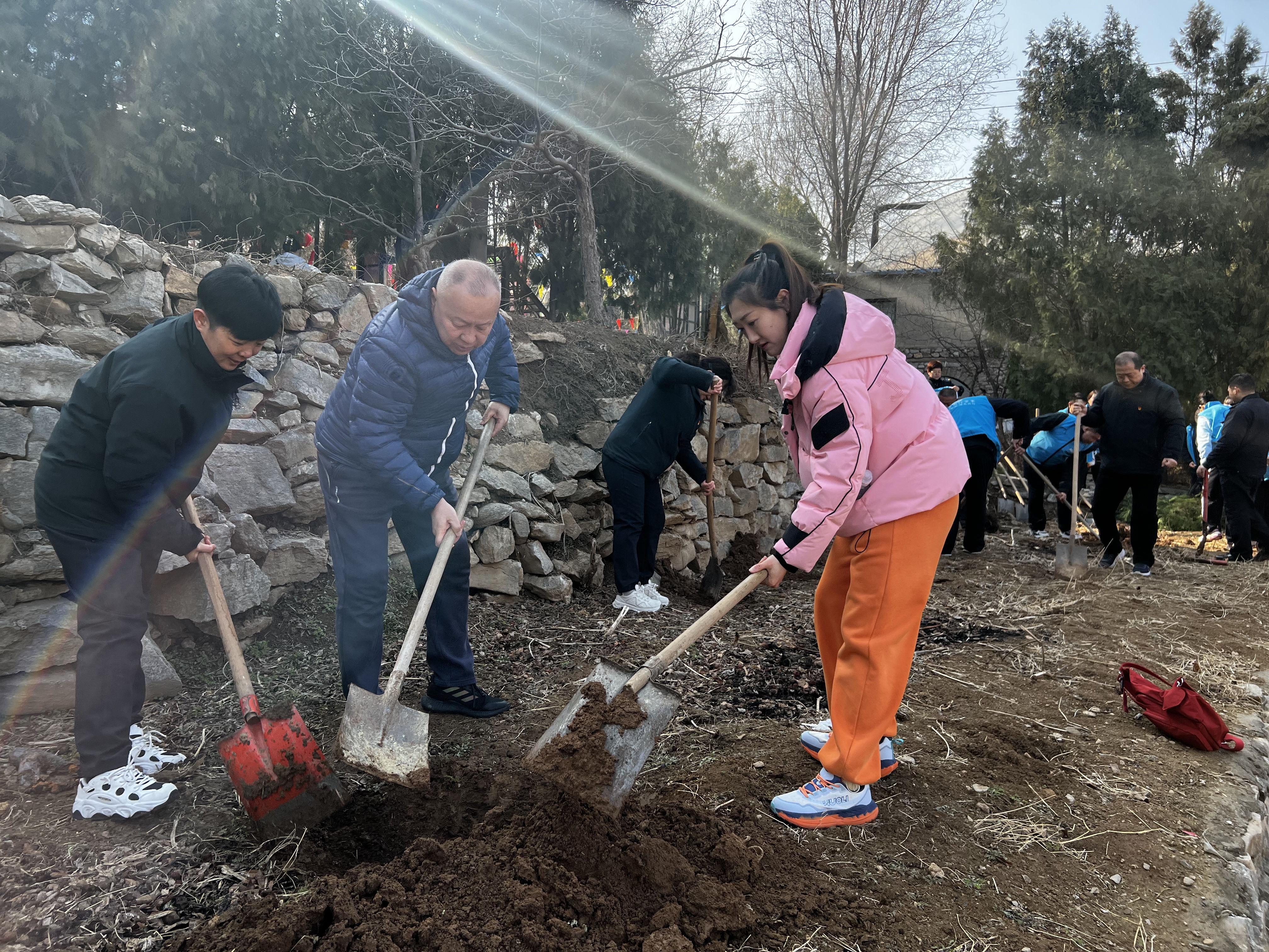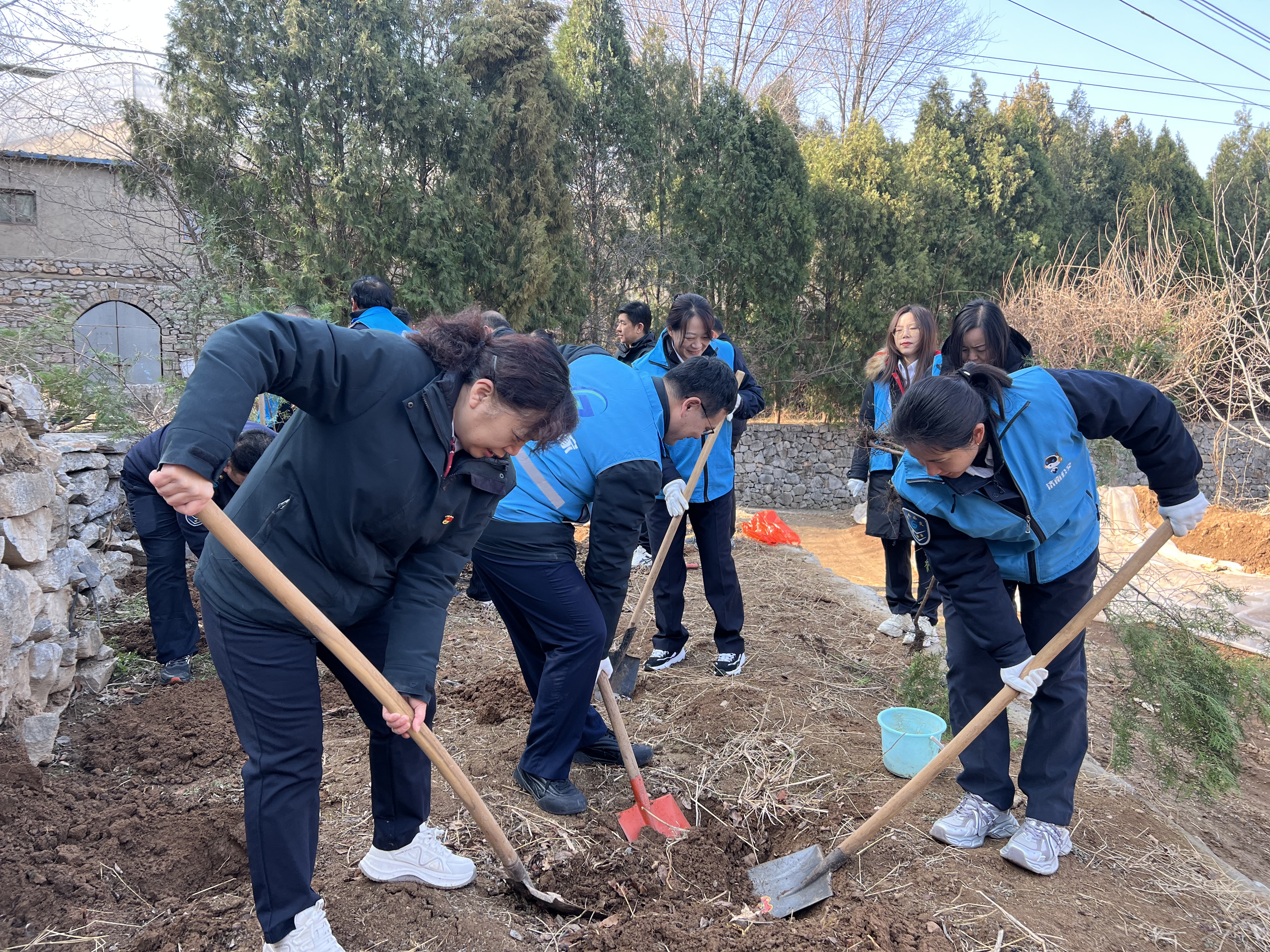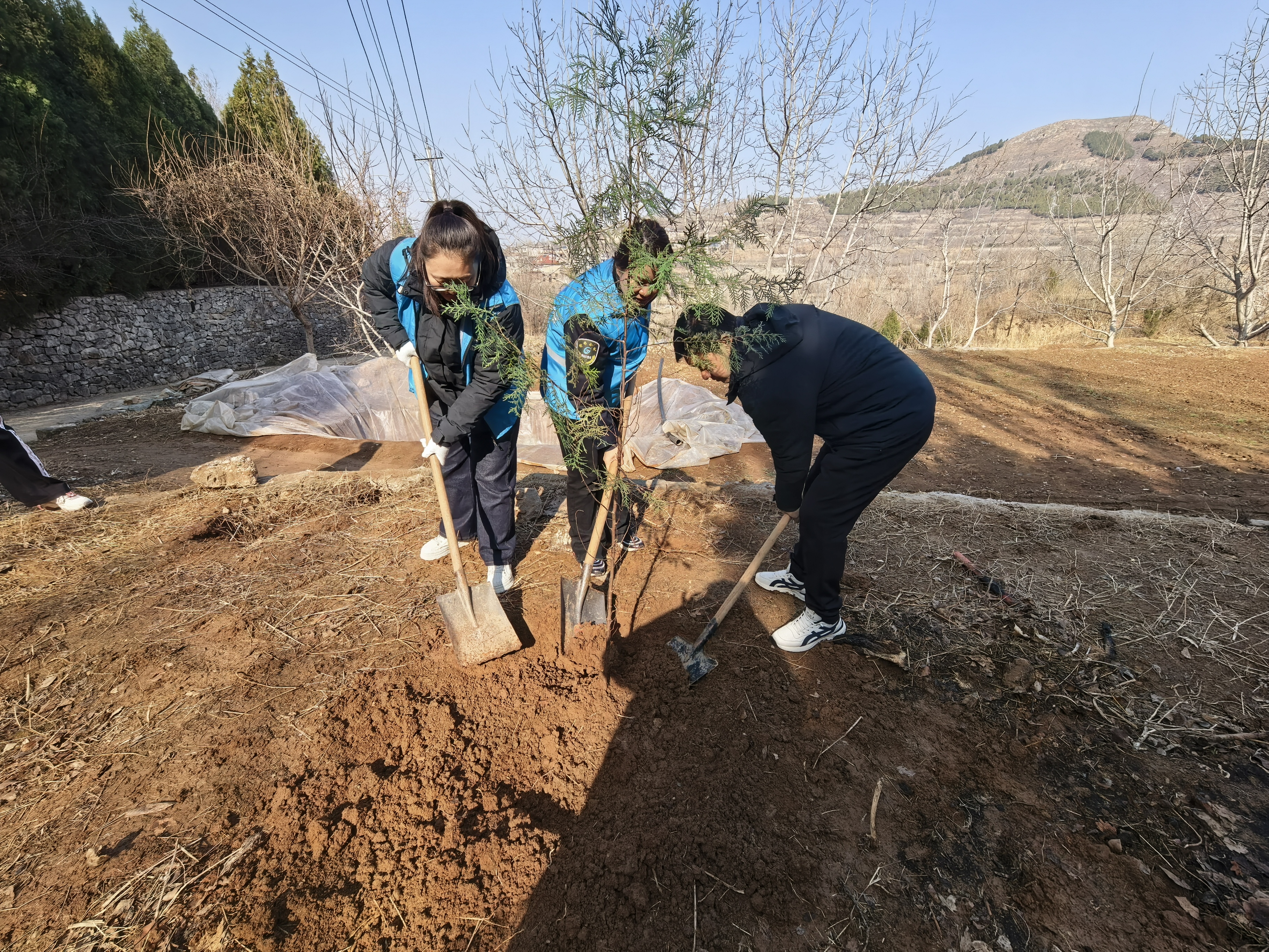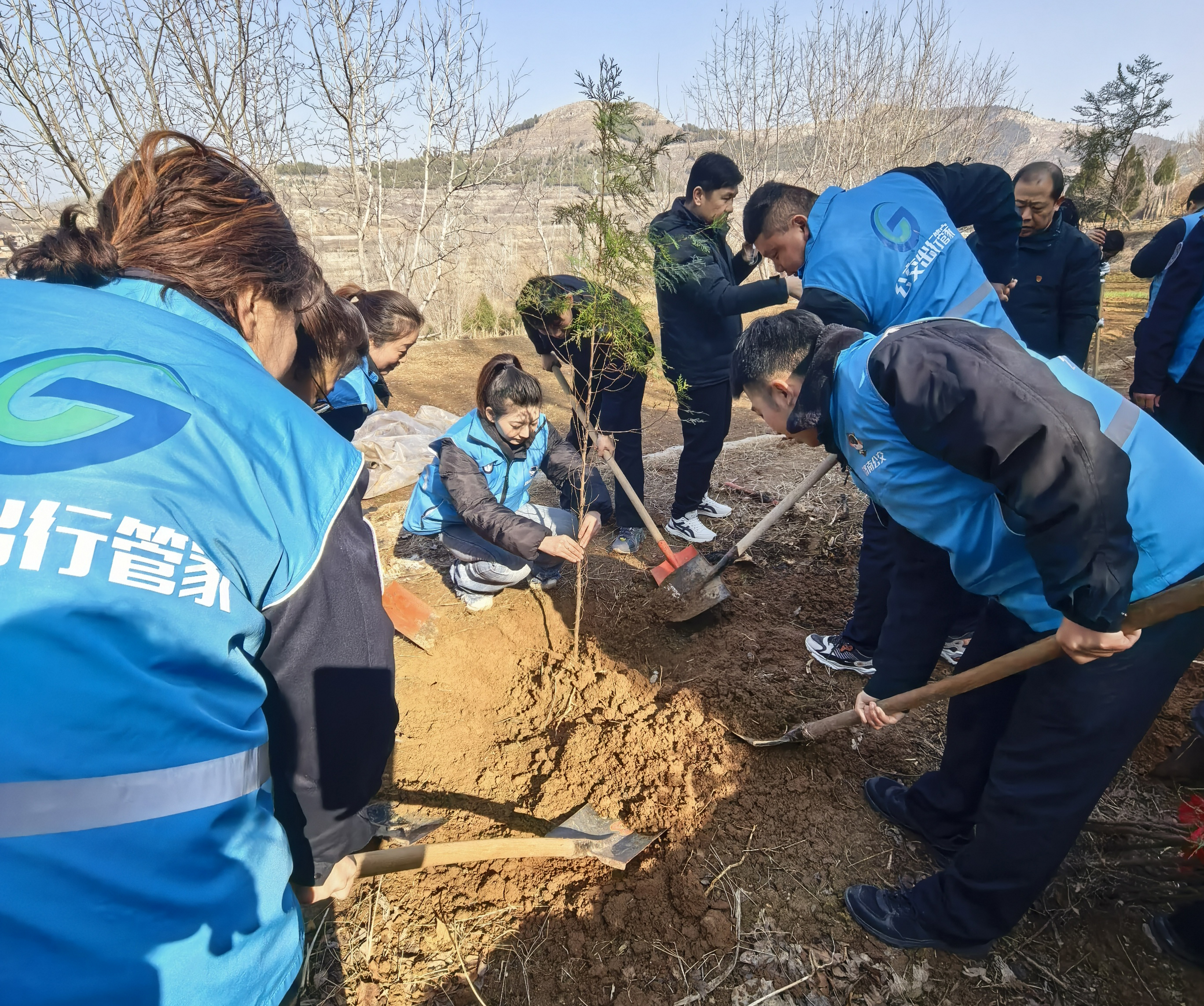 活动现场,大家热情高涨、分工协作,挥锹铲土、扶苗正干、培土围堰、提水浇灌,每一道工序都认真细致、衔接有序。党员干部带头示范,职工们干劲十足,相互配合、默契无间,原本空旷的地块很快栽满了新苗。春日阳光下,一株株树苗迎风挺立,为石崮寨的山野增添了勃勃生机,也种下了公交人对生态家园的美好期盼。