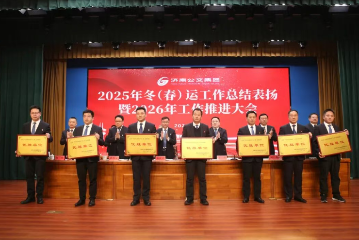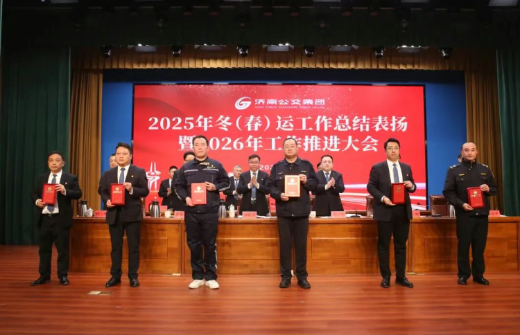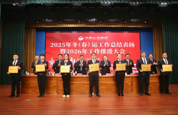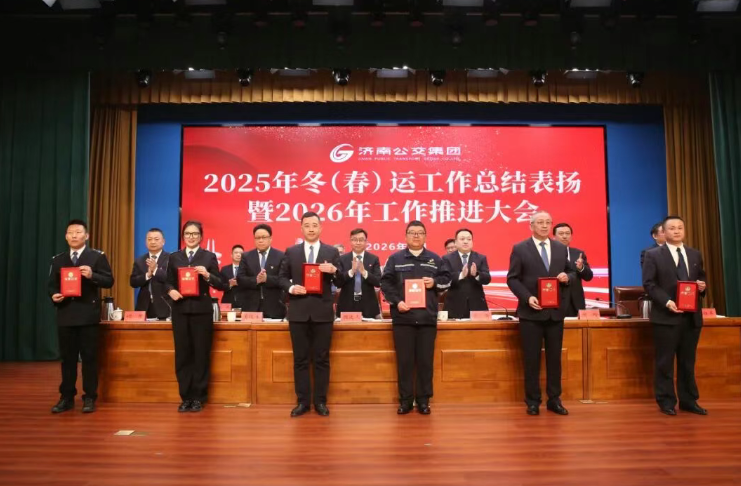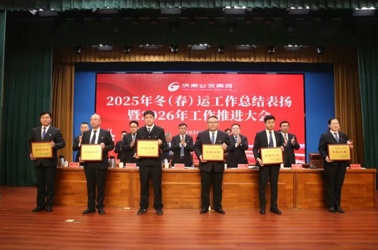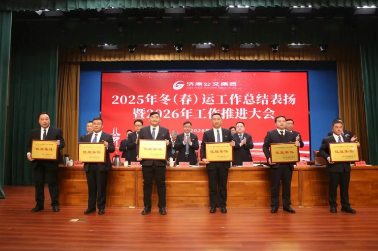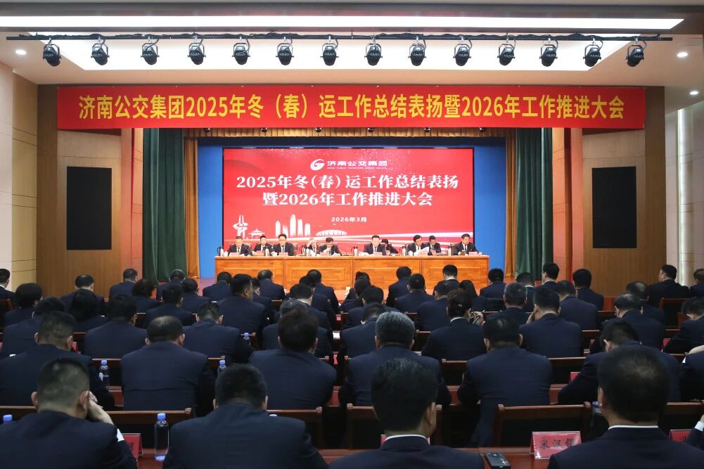 济南公交官网讯 汗水凝结硕果,实干写就华章。3月13日下午,济南公交召开2025年冬(春)运工作总结表扬暨2026年工作推进大会,通报表扬2025年冬(春)运竞赛优胜单位、集体、个人,对2026年工作进行再部署、再要求,动员广大员工紧扣“项目赋能年”发展要求,立足市民出行需求和城市发展需要,进一步推动公交事业高质量发展,为打造“强新优富美高”新时代社会主义现代化强省会筑牢公交出行保障。集团党委书记、董事长颜廷虎出席会议并讲话。会议由集团党委副书记、董事、总经理李峰主持。集团班子成员、各部室负责人、各单位班子成员,各营运分公司车队长、维修服务公司分公司经理及获奖代表参加会议。