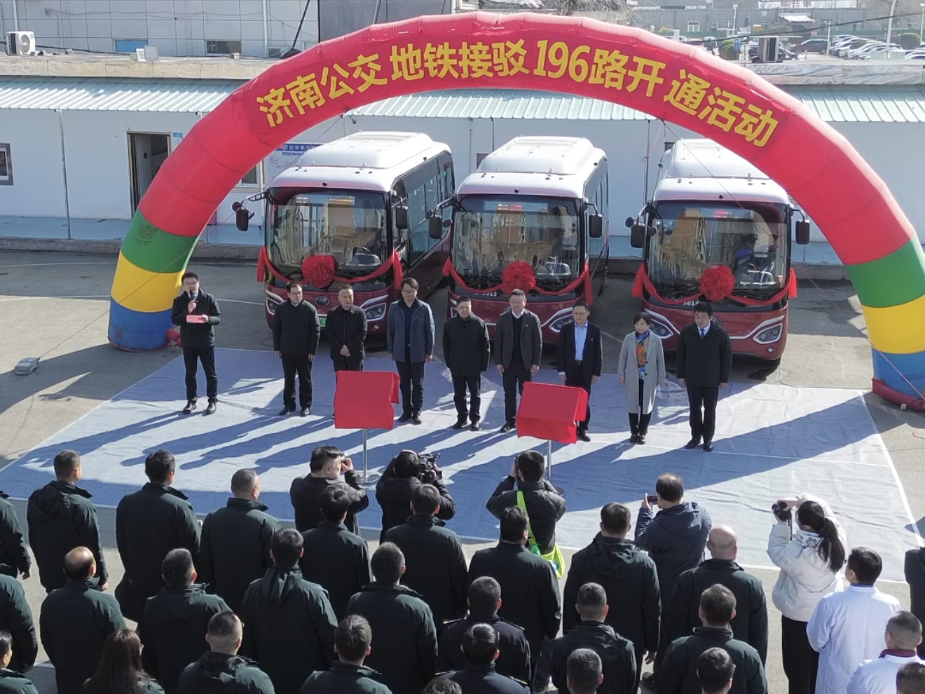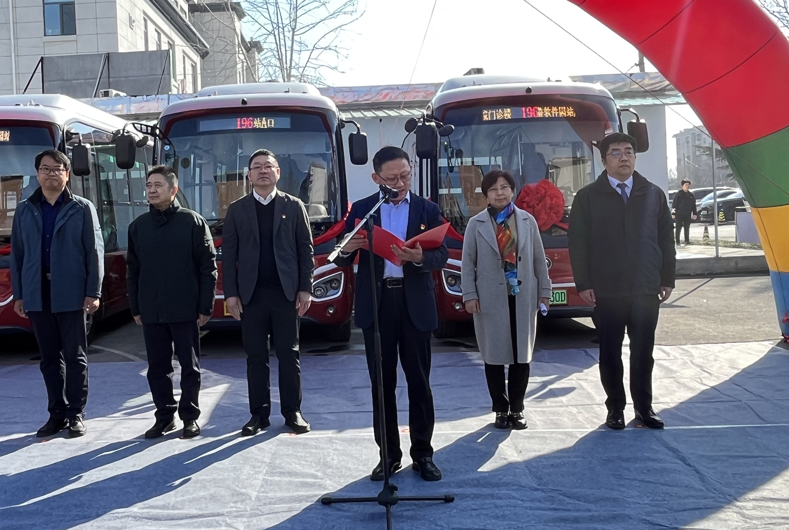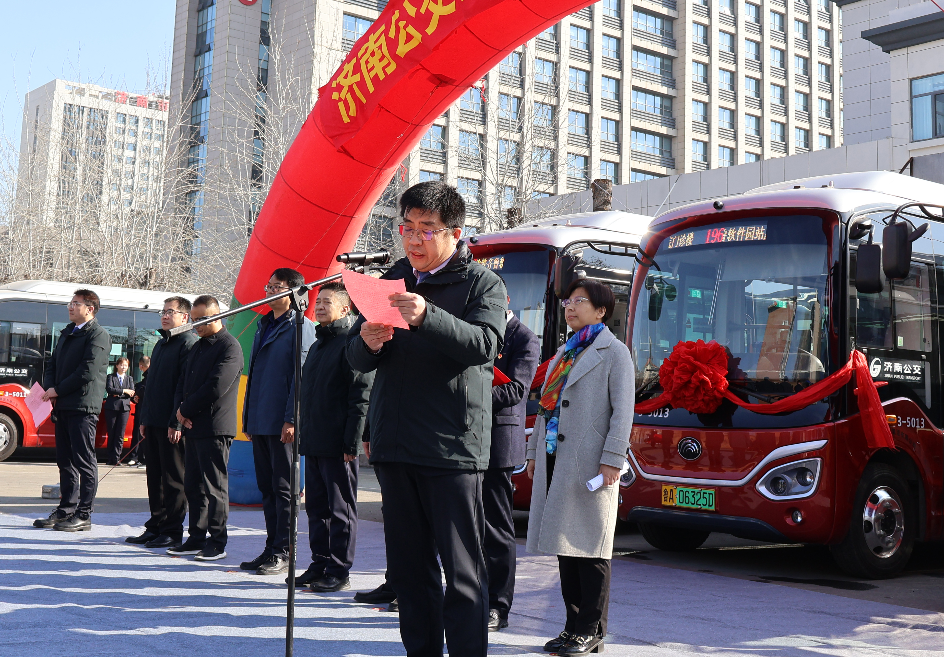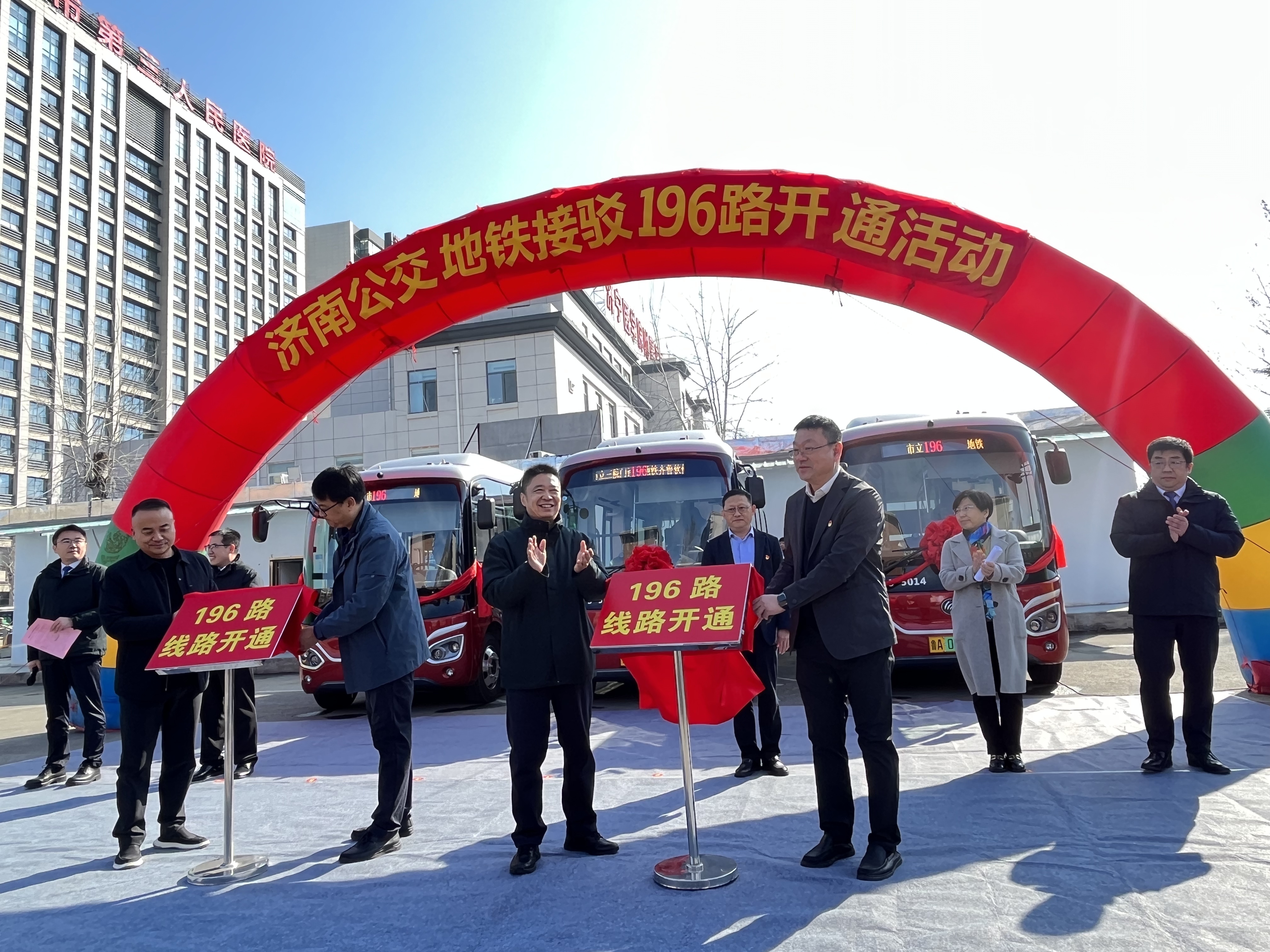 活动中,东部分公司经理韩猛介绍了196路线路开通情况;济南市第三人民医院院长王业本为线路开通致辞;最后,济南公共交通集团总经理助理张庆,济南市第三人民医院党委书记王俊峰,济南市城乡交通运输局公交处副处长边延林,济南市第三人民医院党委副书记、院长王业本共同为线路开通揭彩。