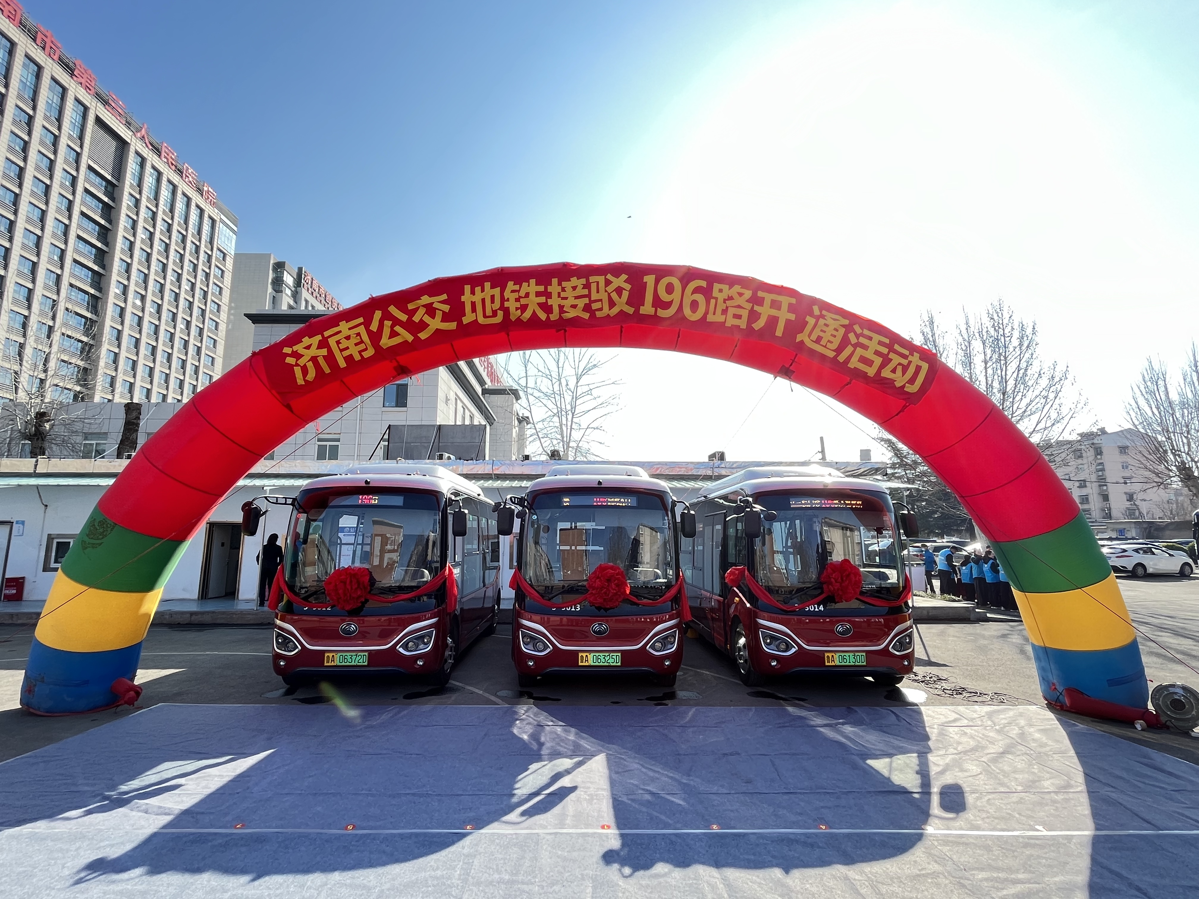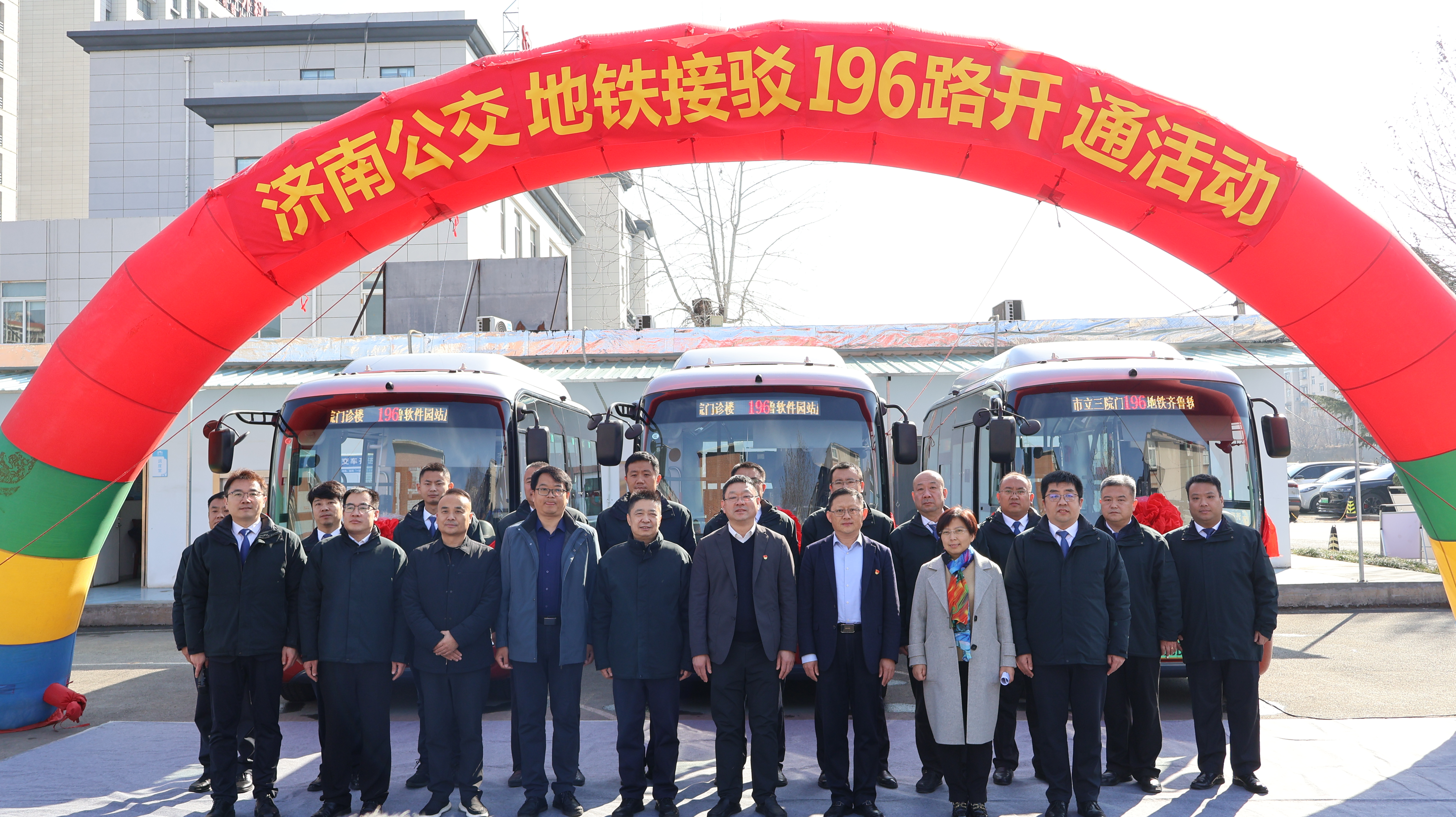 19日上午,济南公交196路线路开通活动在济南市第三人民医院举行。济南公共交通集团总经理助理张庆,济南市第三人民医院党委书记王俊峰,济南市城乡交通运输局公交处副处长边延林,济南市第三人民医院党委副书记、院长王业本,历城区王舍人街道办事处副主任王锋,历城区城乡交通运输局事业发展中心副主任范海燕,济南公共交通集团营运市场部副部长付志刚,济南公共交通集团东部分公司经理韩猛,东部分公司及济南市第三人民医院职工代表以及乘客代表参加了此次活动。