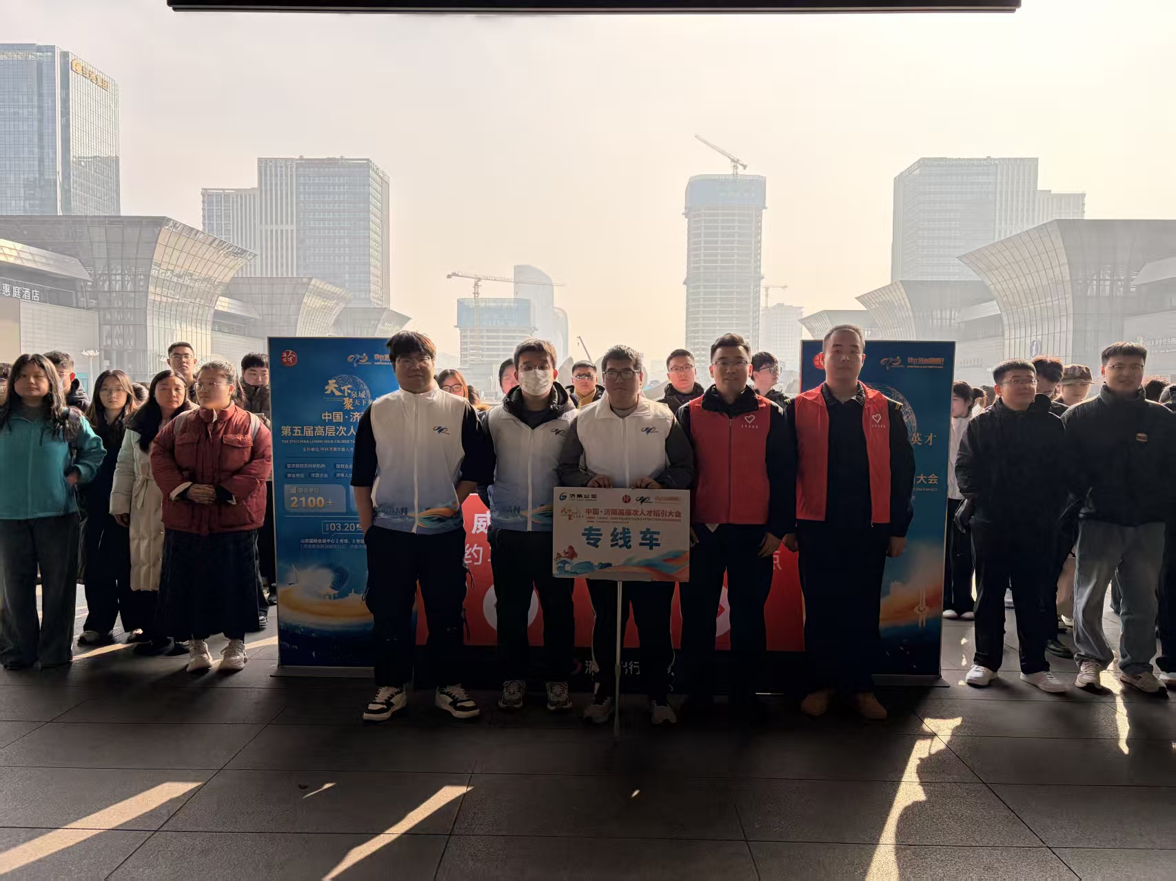 济南公交官网讯 “天下泉城聚天下英才”济南第五届高层次人才招引大会在山东国际会展中心举行。作为济南吸引集聚青年英才、打造人才集聚高地的重要盛会,大会吸引了省内外高校学子、各地行业人才踊跃参会。济南西站公交枢纽志愿服务队积极响应济南公交号召,提前谋划、周密部署,分兵两路开展专项志愿服务,以暖心高效的服务保障参会人员顺畅出行,用实际行动擦亮泉城公交服务品牌,传递城市爱才重才的满满诚意。