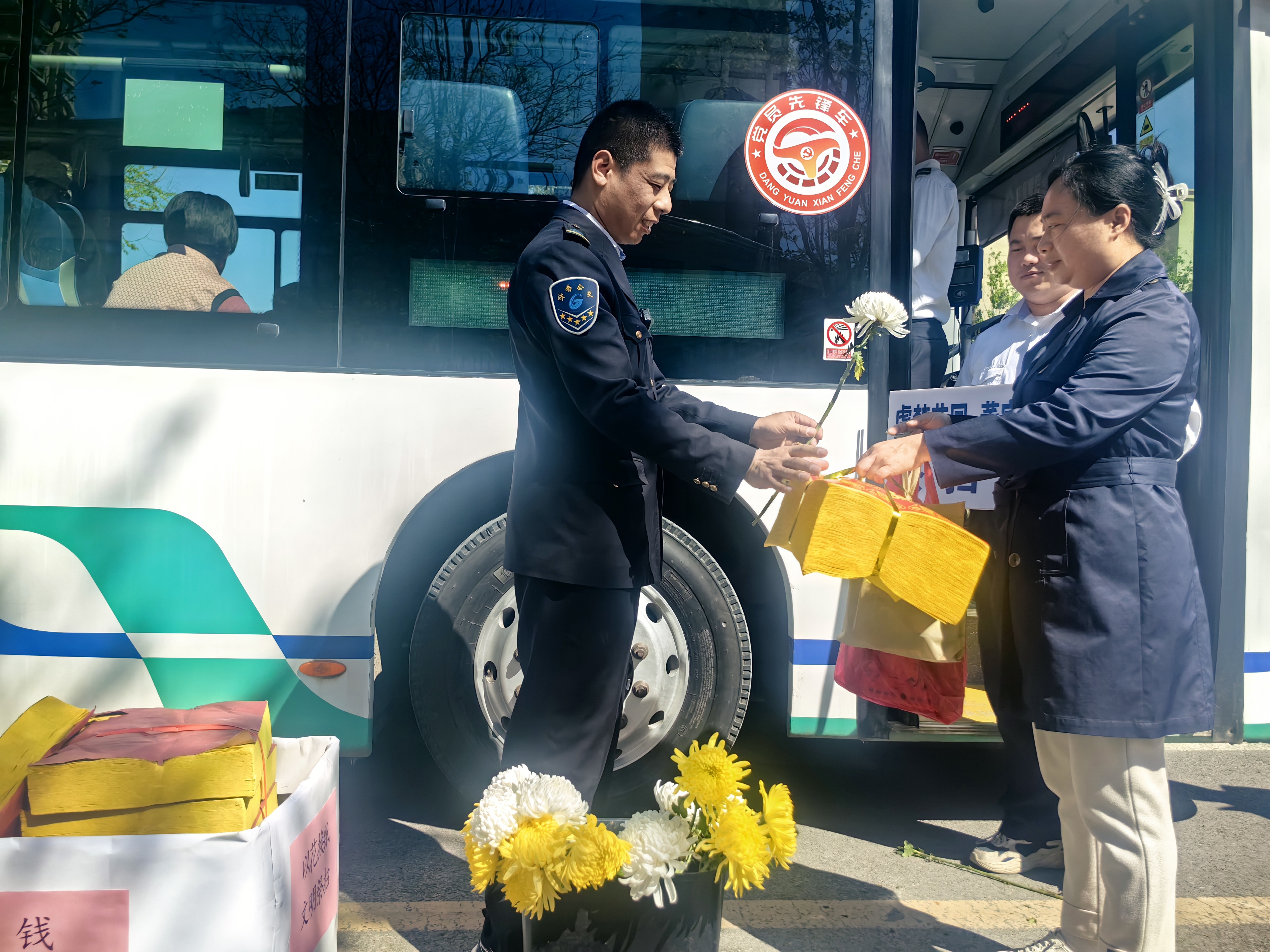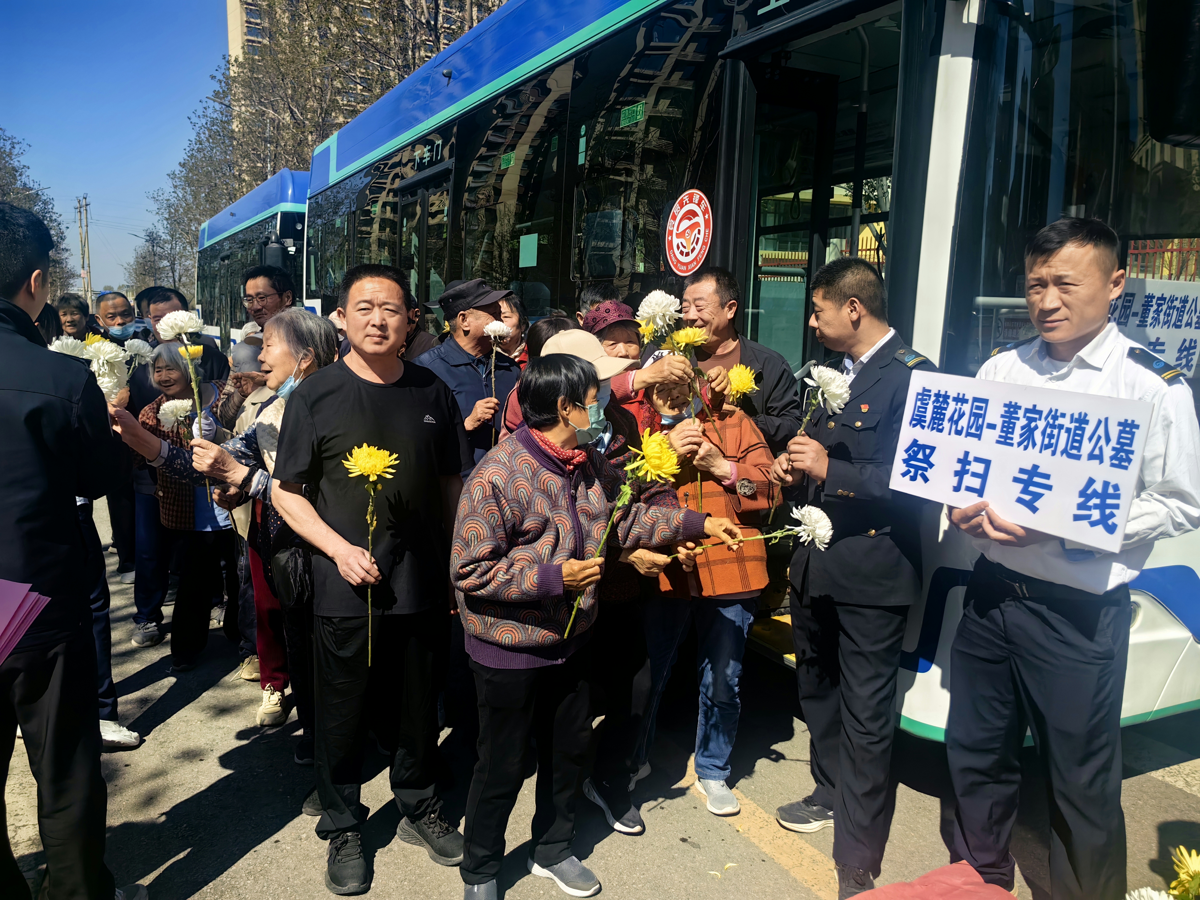 济南公交官网讯 清明时节,翠柏凝春。为积极响应绿色文明祭扫号召,切实解决董家片区村民的出行难题,4月4日下午,济南公交东部分公司六队以党建为引领,组织党员、高星级驾驶员等志愿者,在虞麓花园开展“清明祭扫专线”暨“鲜花换纸钱”文明倡导活动,以贴心服务打通村民祭扫出行的“最后一公里”。