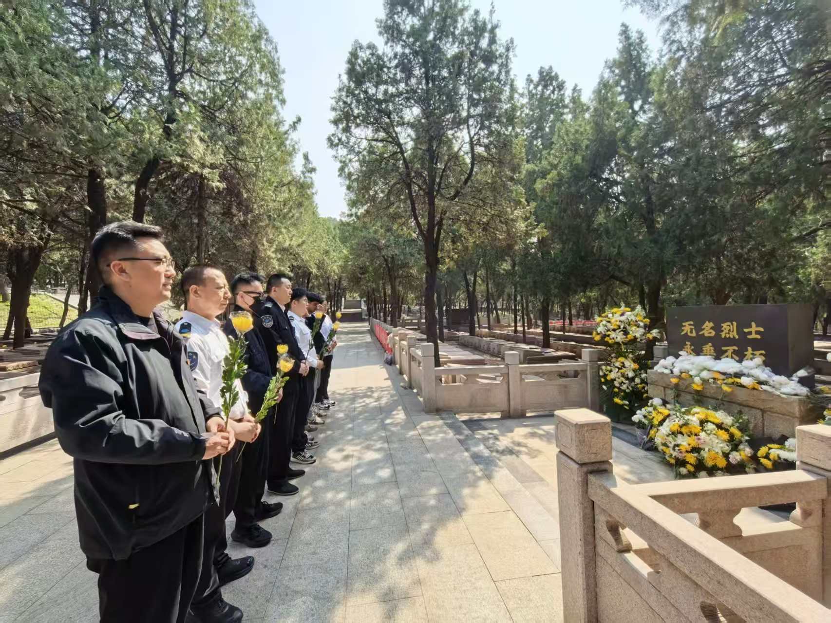 清扫完毕后,大家整齐肃立于无名烈士纪念碑前。低头鞠躬、静默默哀,无声的哀思里,是对那些未留姓名、却以生命赴使命的先烈最深沉的敬仰;随后,大家依次敬献鲜花,花瓣轻触碑身,承载着“山河为证、英魂永存”的信念,传递着“不忘初心、砥砺前行”的誓言。