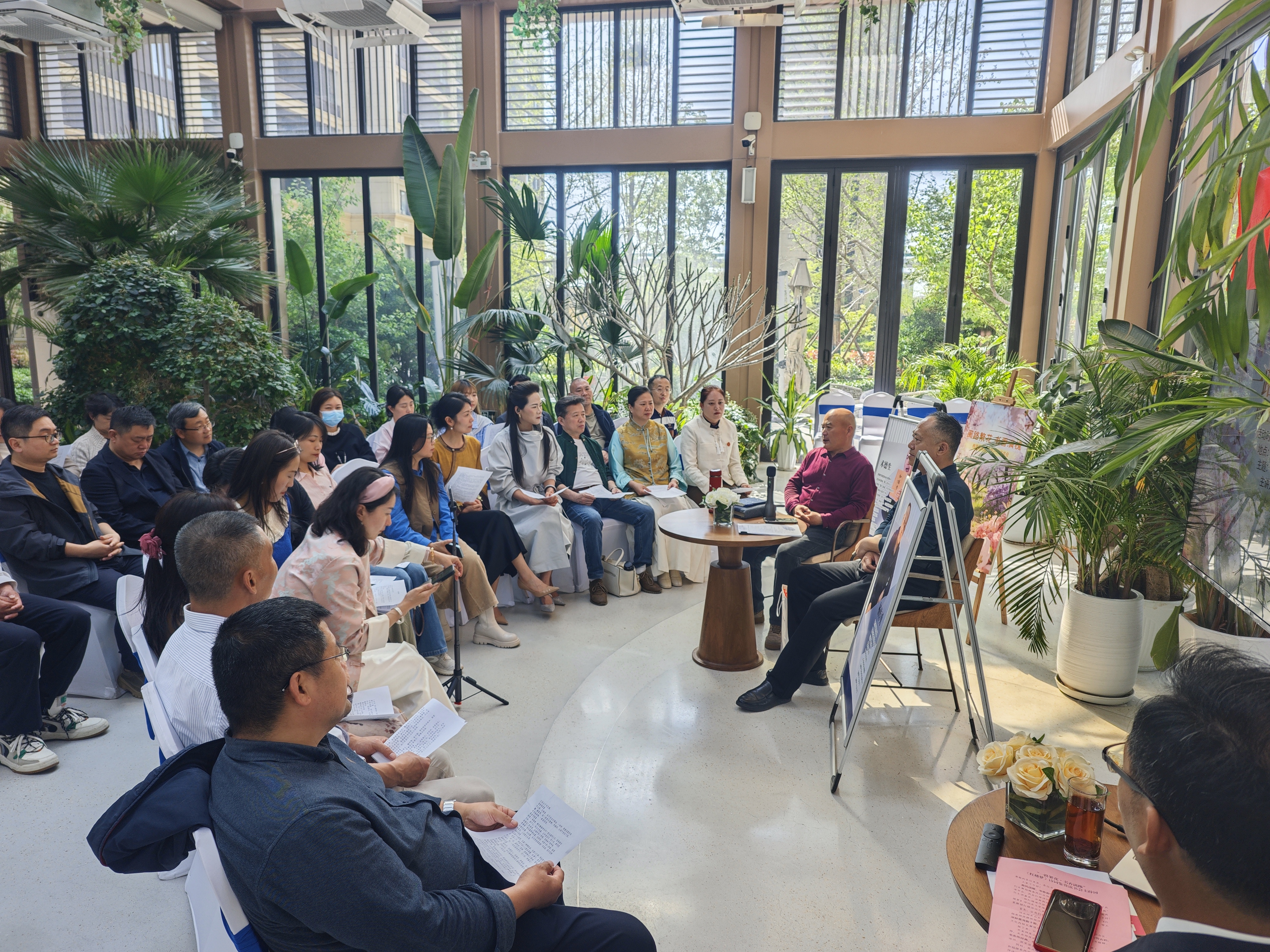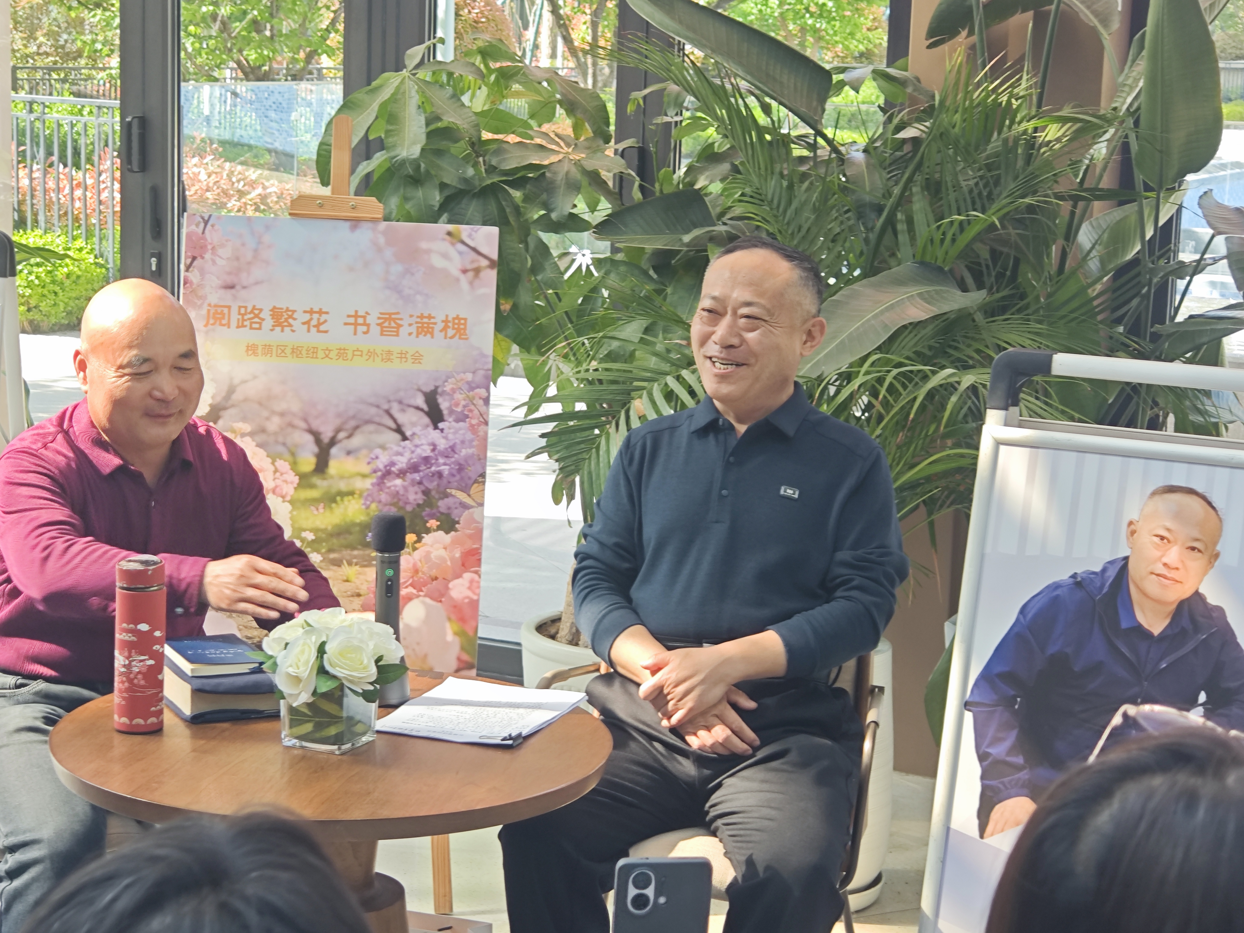 本次读书会以“红楼梦中的诗词鉴赏”为主题,于4月12日15:00至17:00举行。活动现场繁花簇拥、春意盎然,在春日暖阳与墨韵书香的交融氛围中,两位讲师以深厚的文化积淀,为在场观众带来了一场沉浸式的古典文学赏析分享。作为山东诗词学会理事、淄博市诗词学会副会长,杨传勇老师深耕中华传统诗词文化研究多年,从艺术特色、格律章法、文化内涵等多个维度,深度拆解《红楼梦》诗词的精妙之处;2024年度山东省“职工读书达人”术德生老师,深耕《红楼梦》研究多年,拥有数百场线下读书会分享经验,以人文思辨、人性解读为切入点,带领在场观众探寻诗词背后暗藏的人物命运伏笔与深层时代意蕴。