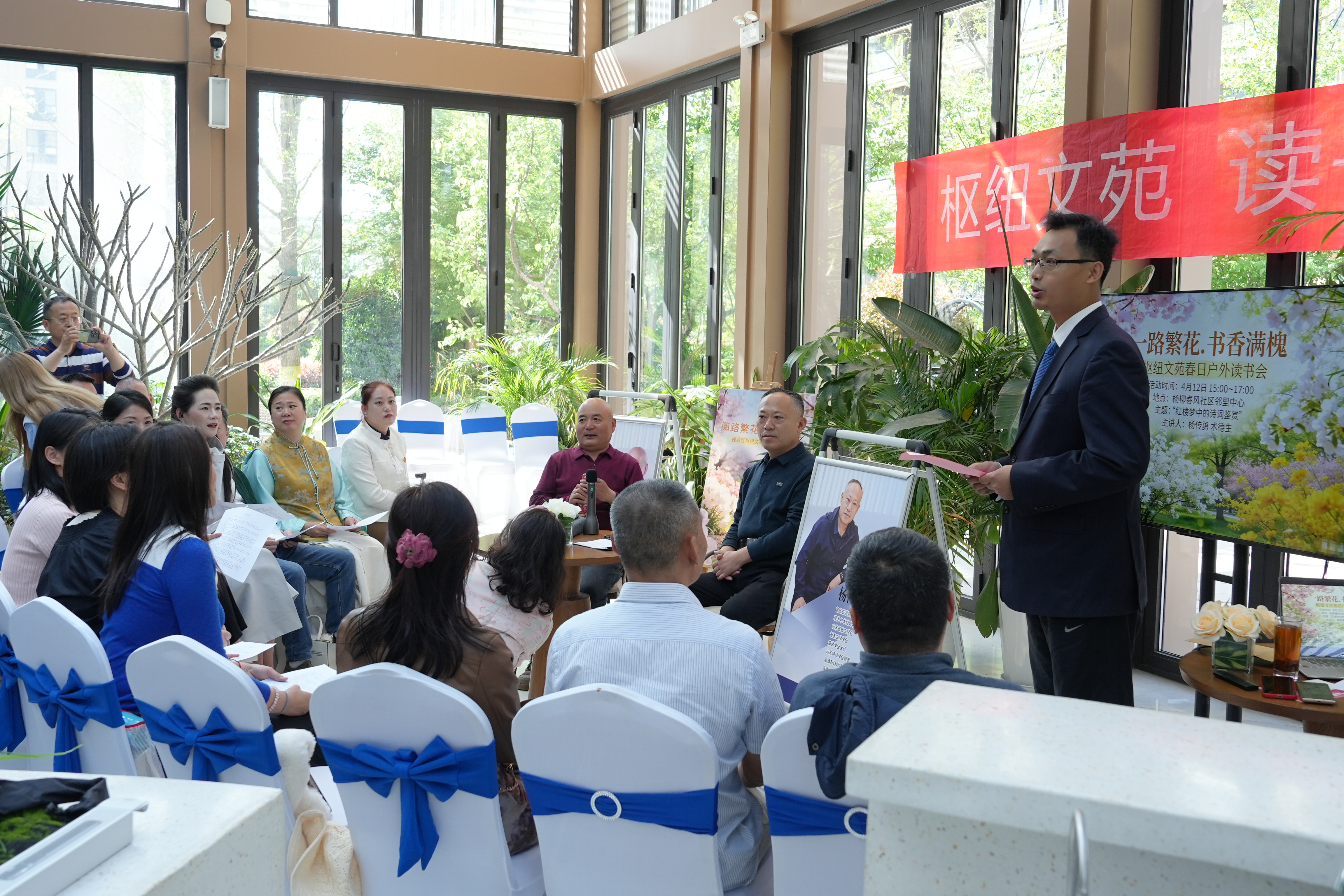 济南公交官网讯 为丰富职工精神文化生活,涵养职工人文素养,厚植企业文化底蕴,近日,济南公交西部分公司工会联合济南西站枢纽文苑,在杨柳春风社区邻里中心成功举办“一路繁花·书香满槐”枢纽文苑春日户外读书会。活动特邀杨传勇、术德生两位资深文化讲师主讲,吸引了济南公交西部分公司职工、济南西站枢纽文苑书友及杨柳春风社区居民踊跃参与,共赴一场《红楼梦》诗词的文化盛宴。