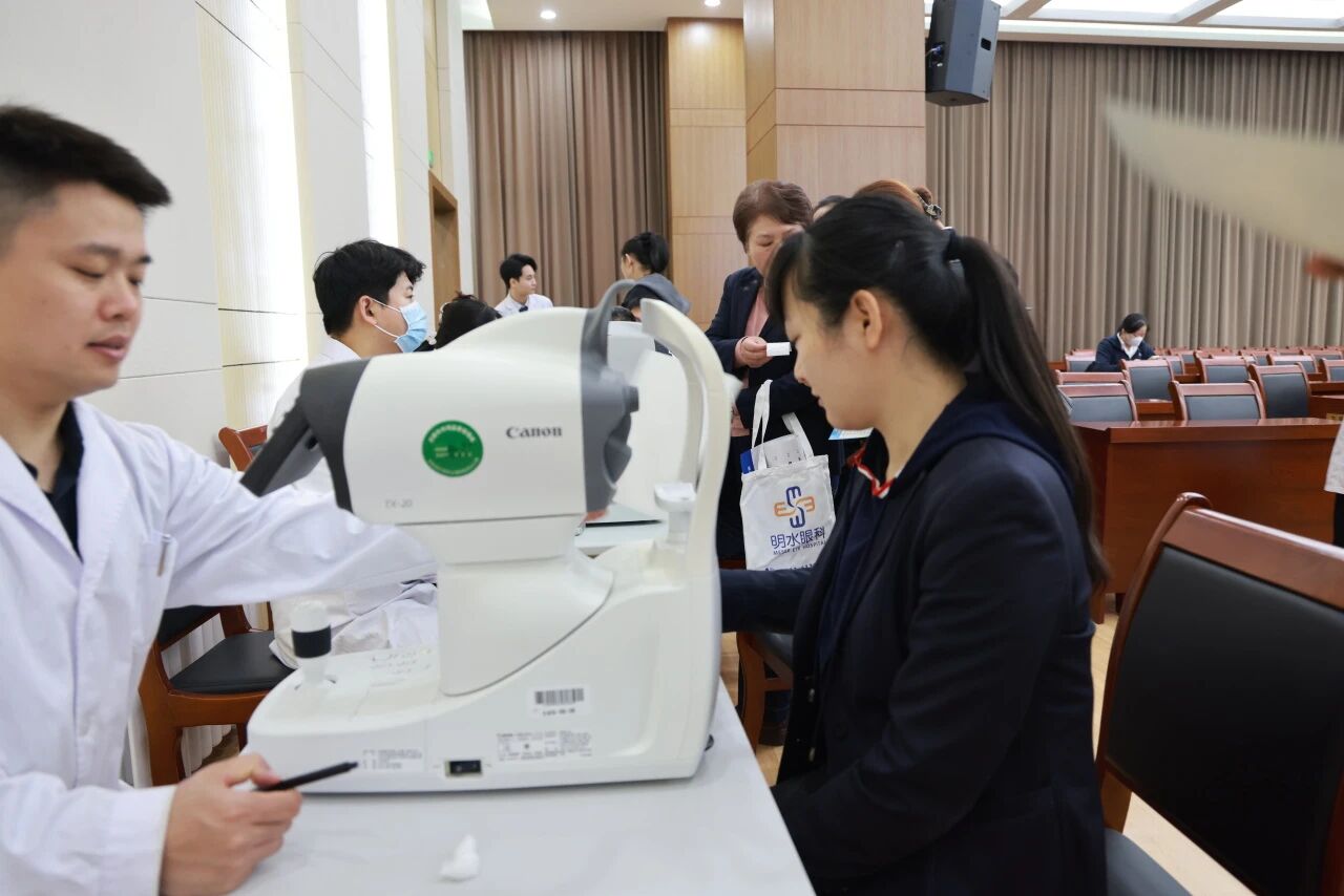 随后,医院工作人员为大家进行了免费眼健康检查,包括视力、验光、眼压、裂隙灯、眼底筛查等全套基础检查。医院工作人员还为佩戴眼镜的员工准备了眼镜清洗维修、干眼雾化体验、一对一护眼咨询等服务。