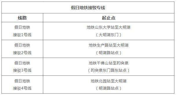 “五一”假期来临,趵突泉、黑虎泉、大明湖等核心景区及周边商圈将迎来客流高峰,济南公交精准研判客流特点,开通4条假日地铁接驳专线,采用点对点直达运营模式,中途不设置停靠站点,实现地铁出站口与景区入口无缝连通,大幅缩短游客步行距离,全面提升假日文旅出行体验。