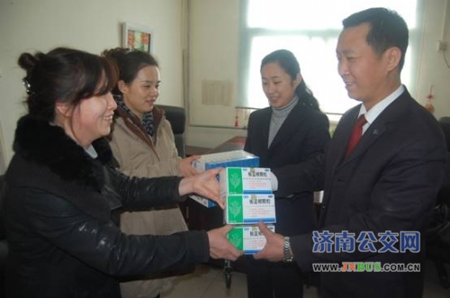 3月6日下午,济南公交医院的工作人员来到三公司,将代表着总公司党委关怀的药品,送到了一线职工手中。