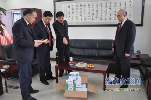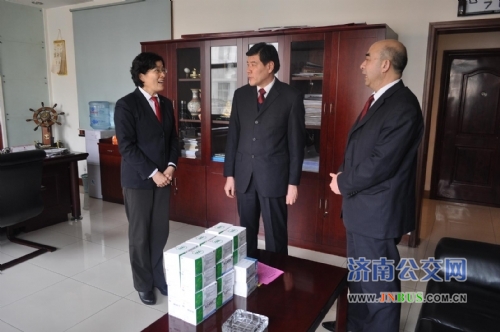 济南公交官网讯 近日,总公司副总经理张栩、公交医院院长刘广山带领公交医院医务人员,先后到一公司、快速公交公司、三公司、恒生公司、二公司、电车公司等单位和部分车队、站台慰问公交职工。