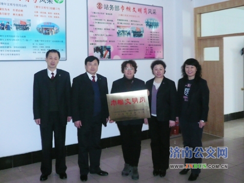 3月13日下午,总公司党委副书记、工会主席刘波,总公司工会副主席尹萍,总公司政工部部长王永济到快速公交公司为站务管理部颁发由山东省妇女“双学双比”“巾帼建功”竞赛活动领导小组、山东省妇女联合会授予的二〇一一年度“巾帼文明岗”奖牌。同时,领导们对如何加强和规范党务台账进行了指导调研。