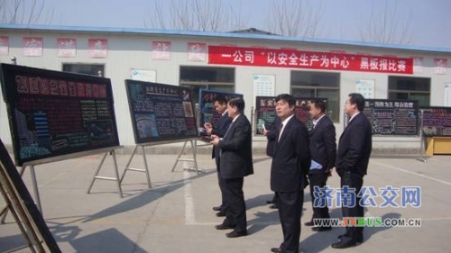 动员会前,公司邀请了总公司安保部领导、公司领导及与会驾驶员参观了各车队创办的“以安全生产为中心”黑板报,各位领导及驾驶员代表分别对黑板报进行评价、打分。