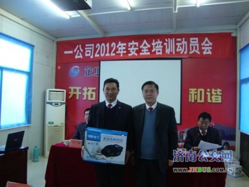 动员会上,总公司安全保卫部部长赵德荣就做好2012年安全培训工作的重要意义及抓好培训工作落实作了重要讲话,并对安全培训课件展示和黑板报比赛活动给予高度评价和认可。公司副经理王伟作了培训动员讲话。安全员、驾驶员代表分别作了安全培训的表态发言,并进行了安全培训课件的展示和评比活动。随后,总公司领导对黑板报、课件评比活动中获奖的单位和个人进行了颁奖。