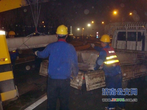 济南公交官网3月20日讯 根据上级领导的工作安排,维修五分公司承担了对BRT六号线途径的奥体中路南头从省立医院东院路口至经十东路出口一段,双向近千米的BRT高护栏及水泥隔离墩的拆除工作任务。根据交警部门及总公司领导要求,该项工作要安排到晚上9点之后,道路上车辆密度较低的时段进行。