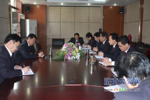 济南公交官网讯 为落实全市“加快科学发展,建设美丽泉城”推进会议精神,3月27日,总公司副总经理石绍滕、技术装备部部长高新传到维修公司调研指导工作,听取维修公司下一步的工作打算和保障措施,并了解维修公司需总公司解决的问题。维修公司领导班子、机关各部室负责人参加会议。