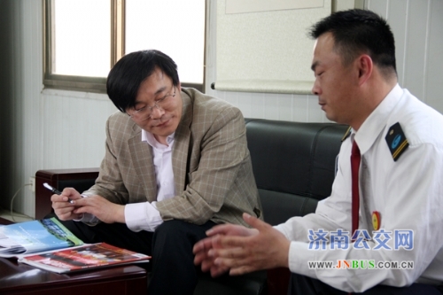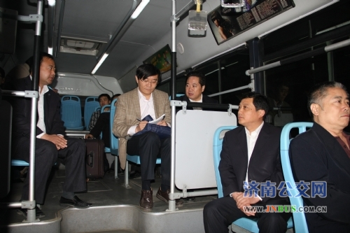 18日凌晨4:40,薛兴海副局长与范军处长便来到一公司五队,准备体验18路首班车。5点整,18路驾驶员柴树立驾驶4852号车准时从姚家东区发车。在公交车上,薛兴海副局长向范军处长介绍了今年来济南公交的发展情况。6:30分车辆返场后,薛兴海副局长与范军处长先后来到18路和62、63路站房、停车场区、维修车间,现场查看了一公司五队站房企业文化、智能调度等工作情况。随后范军处长一行参加了一公司“送技术进车队”培训活动,认真听取了一公司副经理何彬关于“方健节能驾驶操作法的分析讲解”的讲座,并与“全国节油王”提名奖方健、全国城市公交客车节油大赛冠军张建进行了亲切座谈。