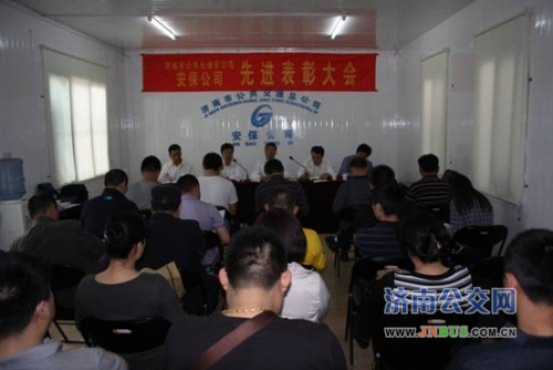 济南公交官网讯 4月23日,安保公司召开安全生产工作会议暨先进中队表彰大会,公司全体机关人员、中队长、检查员、监控人员参加会议。会议由由办公室主任姜海涛主持。