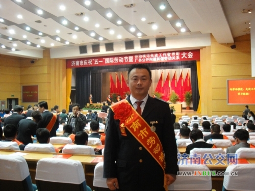 济南公交官网4月26日讯 今天上午,济南市庆祝“五一”国际劳动节暨劳动模范先进工作者表彰大会在舜耕会堂举行,一公司3路线驾驶员张健被济南市人民政府授予“济南市劳动模范”荣誉称号。