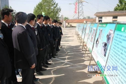 济南公交官网讯 为进一步做好“五一”期间安全防范工作,确保安全形势稳定,4月26日上午,一公司在汽车五队开展了安全大练兵活动。市委组织部企业干部处处长范军出席活动并观摩了演练。市交通运输局副局长、公交总公司党委书记、总经理薛兴海,副总经理姜良,安全保卫部部长赵德荣及一公司经理杨奎星陪同观摩,其他营运公司安全管理人员一同观看了演练。一公司管理人员及驾驶员代表共计80余人参加了演练。一公司安保部经理李元祥担任演练活动现场指挥。