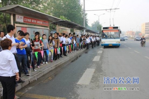 落实营运秩序整顿工作,济南大学站点排队乘车