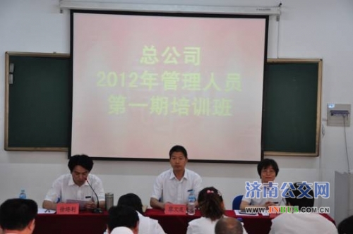 济南公交官网讯 5月9日上午,总公司2012年管理人员培训班在职工培训中心举行。总公司人力资源部副部长李文成、职工学校校长、培训中心主任刘秀华参加开班仪式。开班仪式由职工学校副校长、培训中心副主任徐培利主持。