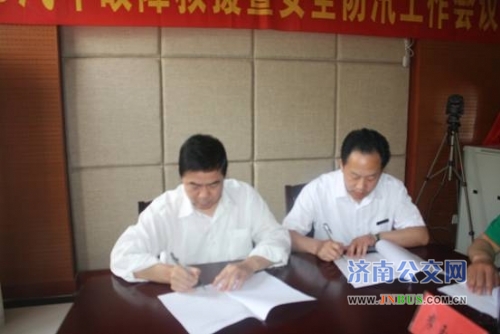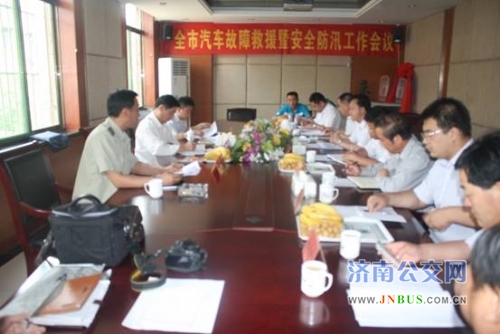 局维修管理处副处长吴玉超传达了市交通运输局《济南市汽车维修行业城市防汛应急预案》,局维修管理处处长侯安业进行了防汛工作具体部署。