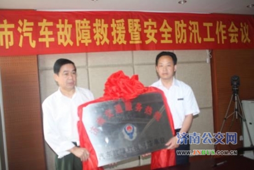 济南公交官网讯 5月11日上午,济南市交通运输局维修管理处在维修公司会议室召开“全市汽车故障救援暨安全防汛工作会议,授予维修公司济南交通服务热线“96596”汽车故障救援网络单位。局维修管理处处长侯安业、副处长吴玉超、维修业务科科长傅岩及全市汽车行业单位有关人员、维修公司党委书记、经理王培海、副经理张东业、安全保卫部经理马平参加了会议。会议由局维修业务科科长傅岩主持,维修公司党委书记、经理王培海在会上作了表态发言。