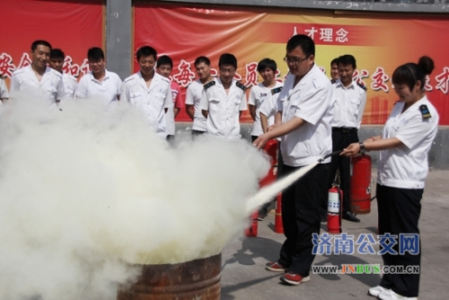 济南公交官网讯 为把好驾驶员教育源头关,保证在炎热的夏季让广大市民乘坐上快捷、安全的公交车,5月16日公交二公司三队组织车队实习驾驶员,进行了一次消防演练活动。