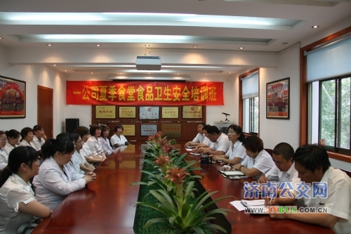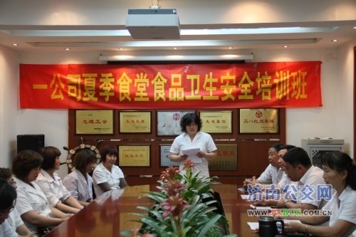 济南公交官网讯 2012年5月24日下午,一公司在石门会议室举办了夏季食堂食品卫生安全培训班。公司所属车队副书记、小食堂工作人员共计30余人参加了培训。会议由公司党委副书记、工会主席李秀珍主持。
