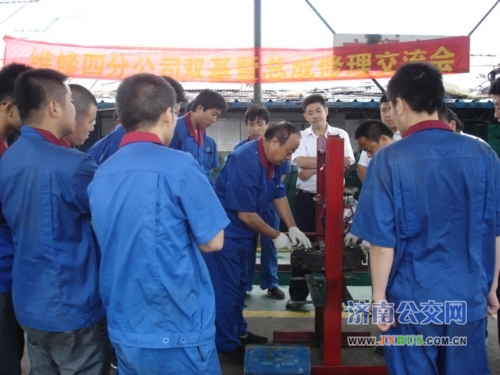 济南公交官网5月25日讯 为促进车辆技术基础管理和总成修理能力的进一步提高,进一步加大修旧利废力度,更好地落实总公司5月11日《车辆技术管理现场观摩会》会议精神,5月24日下午3点,维修四分公司双基暨总成修理经验交流会在世购站点召开。维修公司副经理孔建华、恒生七队队长叶志杰、机务员张树斌、维修四分公司全体管理人员、例检员、各站点班长参加会议由维修四分公司经理刘帅主持。