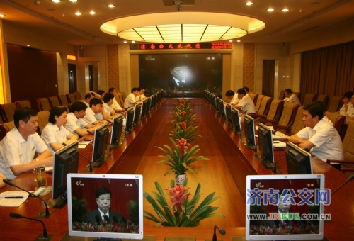 济南公交官网讯 5月24日上午,济南市公共交通总公司党委组织机关党员干部在总公司四楼视频会议室集体收看了中国共产党山东省第十次代表大会实况,认真聆听了省委书记、省人大常委会主任姜异康代表中国共产党山东省第九届委员会所作的工作报告。