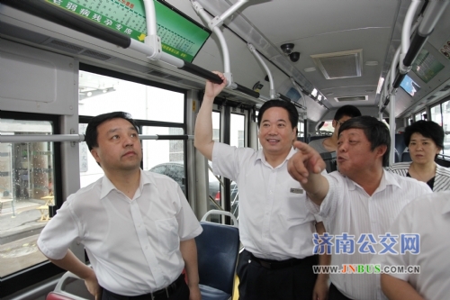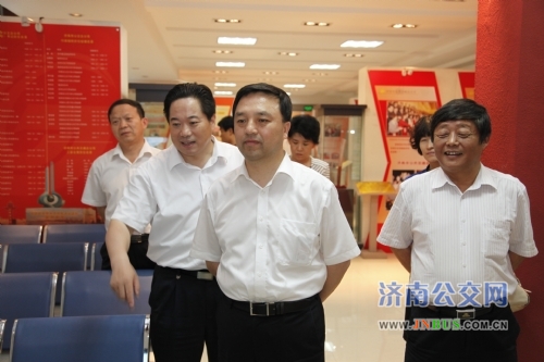 林建宁副部长一行首先来到济南公交指挥中心认真听取了济南市交通运输局副局长、公交总公司党委书记、总经理薛兴海关于公交信息化建设和《加强职工道德建设 当好百姓专职司机》的工作汇报。随后,林建宁副部长一行还兴致勃勃地参观了济南公交史馆,了解了济南公交新能源车辆使用和车厢文化建设情况,视察了济南公交恒生一队站房文化建设情况和论语进车厢、进站房情况。