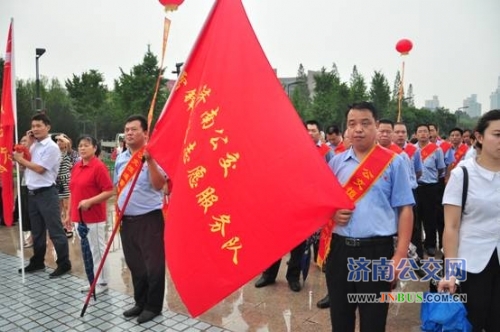 8月1日上午,济南公交恒通公司参加了由中央文明委主办的“济南市关爱他人、关爱社会、关爱自然”志愿服务活动启动仪式。会上,参加此次活动的济南公交雷锋车队领队吴倩从文明委领导手里接过旗帜,雷锋车队正式成为济南市学雷锋志愿服务支队。