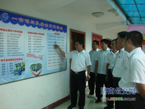 济南公交官网讯 一公司高度重视安全文化建设工作,特别是在总公司《关于进一步营造生产现场安全文化氛围的通知》下发后,一公司认真抓好工作落实,把建立“安全文化墙”作为推进公司安全文化建设的重要内容之一,成立了安全文化建设巡查小组,对各车队“安全文化墙”建设情况进行检查。
