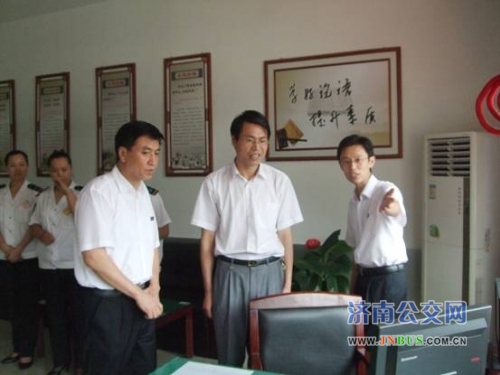 8月8日,山东省交通厅运管处领导一行到济南公交总公司恒生一队参观。市公交总公司副总经理石军、总公司相关部室人员陪同参观。