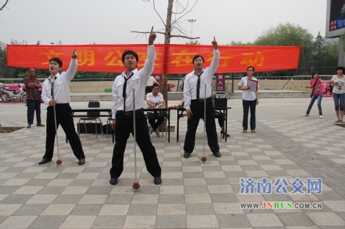 为了创建文明城市,顺利完成全国城市文明程度指数测评工作,济南公交电车公司成立了志愿服务队,采取进社区宣传服务、到公交站点引导排队乘车、参加社会公益活动、开展礼让斑马线活动等多种形式,通过向市民发放《做文明市民、创文明城市》倡议书、《新24孝》宣传单、在现场进行文明城市创建问答题以及歌舞、快板等形式,积极向市民宣传做文明市民、创建文明城市的重要意义,用实际行动,带动影响广大市民自觉摒弃不文明的行为和陋习,养成文明良好的习惯,受到市民的欢迎和好评。