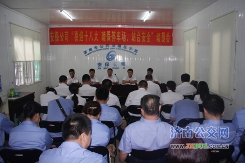 济南公交官网讯 8月20日下午,安保公司召开了由全体管理人员、检查人员、监控人员参加的动员大会。会上公司传达了关于《济南市公共交通总公司迎接党的十八大安全保卫工作实施方案》的通知以及总公司“喜迎十八大,服务上水平”的会议精神。根据总公司指示精神结合安保公司的实际情况,公司制定了《安保公司迎接党的十八大安全保卫工作》的通知,并在会后将此通知下发到各个站点,要求广大职工认真学习、领会。同时,公司将在实际工作中抓好落实。